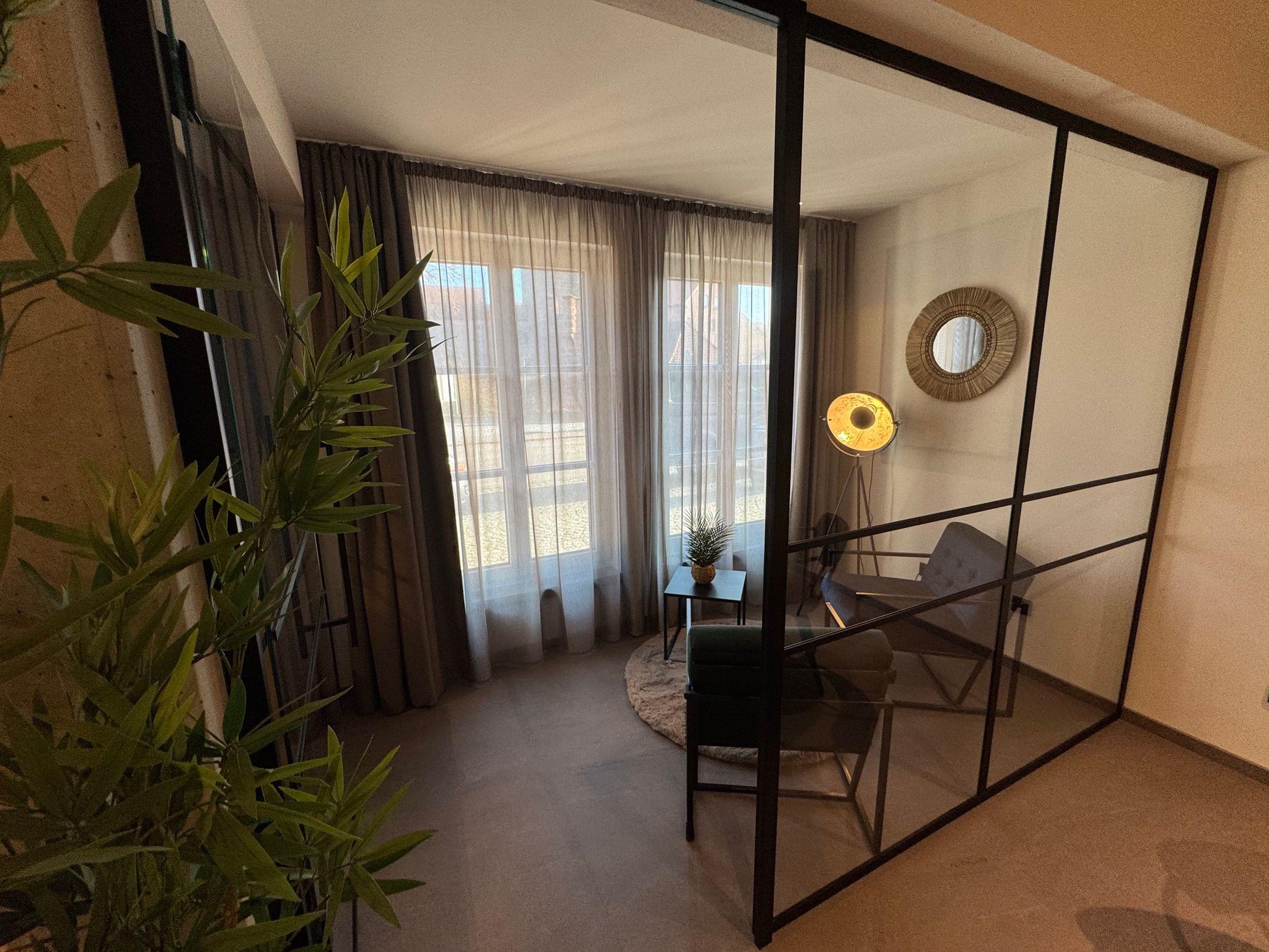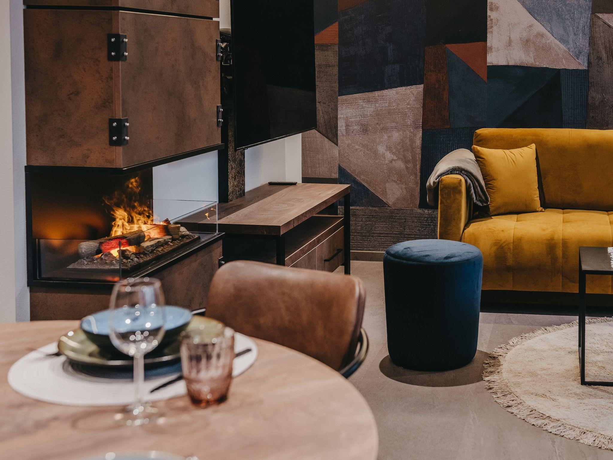 Ein moderner, offener Grundriss verbindet die Wohnlandschaft mit integrierter Küche und den separaten Schlafbereichen. Das besondere Highlight ist das einladende Loft – eine gemütliche Rückzugsebene zum Entspannen. Große, bodentiefe Fenster rahmen den Blick auf das historische Obere Tor und füllen den Raum mit Licht, während ein atmosphärischer LED-Kamin behagliche Stimmung verbreitet.