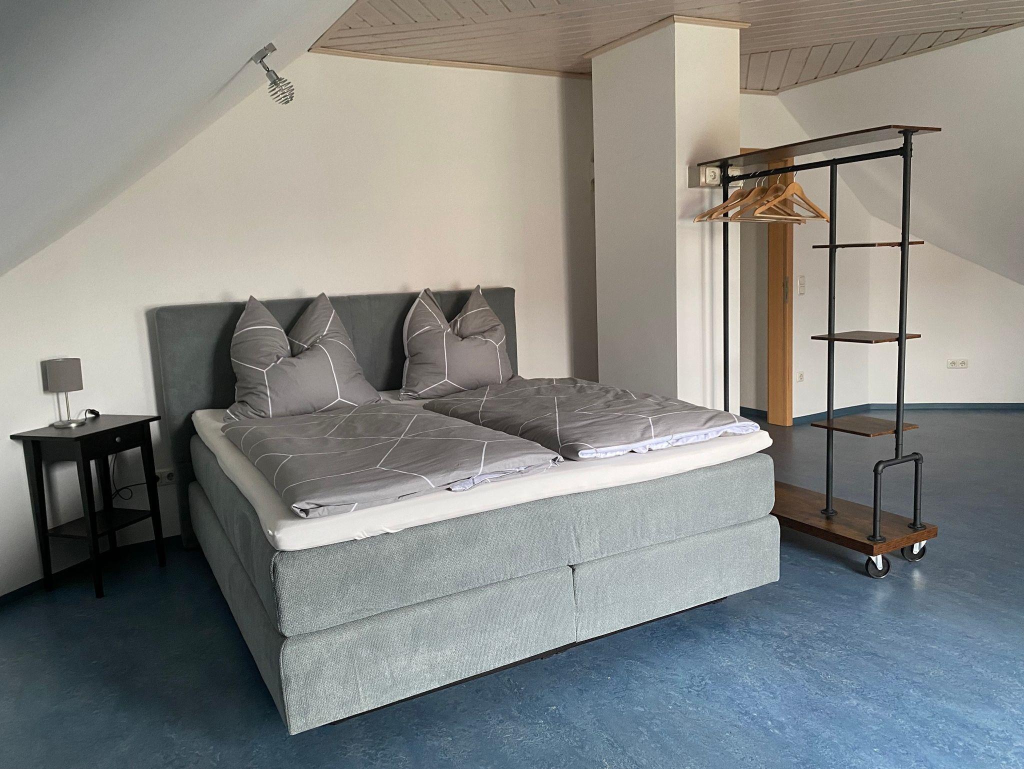 Unsere 95qm große Ferienwohnung liegt im 1.Obergeschoss unseres 1991 erbauten Einfamilienhauses und bietet reichlich Platz für 4 Personen. Sie verfügt über zwei separate Schlafzimmer. Das Schlafzimmer 1 ist ausgestattet mit einem Doppel-Boxspringbett, einer Couch, sowie dem Zugang zum Balkon. Das Schlafzimmer 2 ist ausgestattet mit zwei Einzel-Boxspringbetten, welche auf Wunsch auch zusammengeschoben werden können und einer Schreibtischecke mit Stuhl. Gerne stellen wir Ihnen zusätzlich kostenlos ein Babybett zur Verfügung. Der geräumige Balkon ist mit einem Hängesessel, einem Tisch mit 5 Stühlen und einem Liegestuhl ausgestattet. Der großzügige Wohn-Essbereich lässt keine Wünsche offen, die komplett ausgestattete Küche mit Geschirrspüler, Kühlschrank inkl. Gefrierfach, Herd, Backofen, Wasserkocher, Toaster, Kaffeemaschine sowie der große Esstisch und die gemütliche Couch laden zum Wohlfühlen ein. Das geräumige Tageslichtbad verfügt über eine Badewanne, eine Dusche, ein Waschbecken und ein WC. Vor der Eingangstür in die Ferienwohnung befindet sich im Treppenhaus eine Garderobe, eine zusätzliche Garderobe mit Sitzbank befindet sich im Eingangsbereich. Vor allem im Sommer können Sie entspannte Grillabende in unserem Garten verbringen. Bitte beachten Sie, dass keine Haustiere erlaubt sind. Das WLAN und den überdachten Parkplatz vor dem Haus können Sie kostenfrei nutzen.