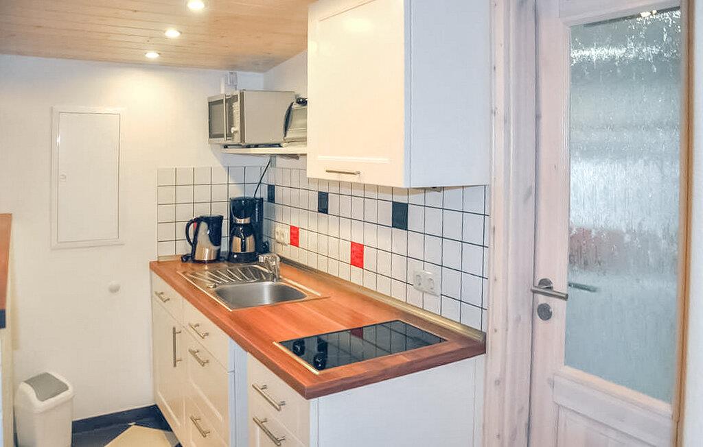 Det cirka 30 kvadratmeter store etværelses sommerhus ligger på ejerens cirka 570 kvadratmeter store og fuldt indhegnede beboelsesejendom i udkanten af byen og kan rumme op til 3 personer (heraf 1 barn op til 6 år). Den er udstyret med kombineret stue og soveværelse med sovesofa, fladskærms-tv, radio, dobbeltseng og åbent køkken med el-komfur (2 plader), køleskab med fryser, mikroovn og grill. Der er også badeværelse med toilet og bruser. Sommerhuset har klinkegulve og centralvarme (via gulvvarme) Til brug er også: WiFi, møbleret terrasse med grill, cykelkælder og parkeringsplads. Rygning er kun tilladt udendørs. Den samlede pris inkluderer: vand og energiforbrug. Du kan medbringe dit eget sengelinned og håndklæder eller leje dem. Betales lokalt: Linnedpakke (hvis relevant). Husdyr: En lille hund op til en højde på 40 cm er tilladt i denne ejendom. Hertugbyen Wolgast ligger direkte ved Peenestrom og er porten til øen Usedom. Den er kun adskilt fra øen af den store foldebro. Særlige seværdigheder i byen er bymuseet, Rungehaus eller Mühlensteinpark. Havnen er udgangspunktet for forskellige bådture, herunder dem mod Usedom. Over 300 dyr af 40 arter lever i Wolgast Zoo. Faciliteten tilbyder også kæle-indhegninger og en zoo-skole specielt for yngre gæster. Wolgast er også en del af European Brick Gothic Route. Udgangspunkterne for dette er Gertruden-kapellet og St. Petri-kirken. Højdepunktet i Wolgasts gamle bydel er det regionale ugentlige marked med nabolagshandlere, der tilbyder en række sæsonbestemte og friske produkter direkte fra regionen. Der er også talrige restauranter, caféer og indkøbsmuligheder på stedet. Der er omkring 10 kilometer til Østersøstranden.