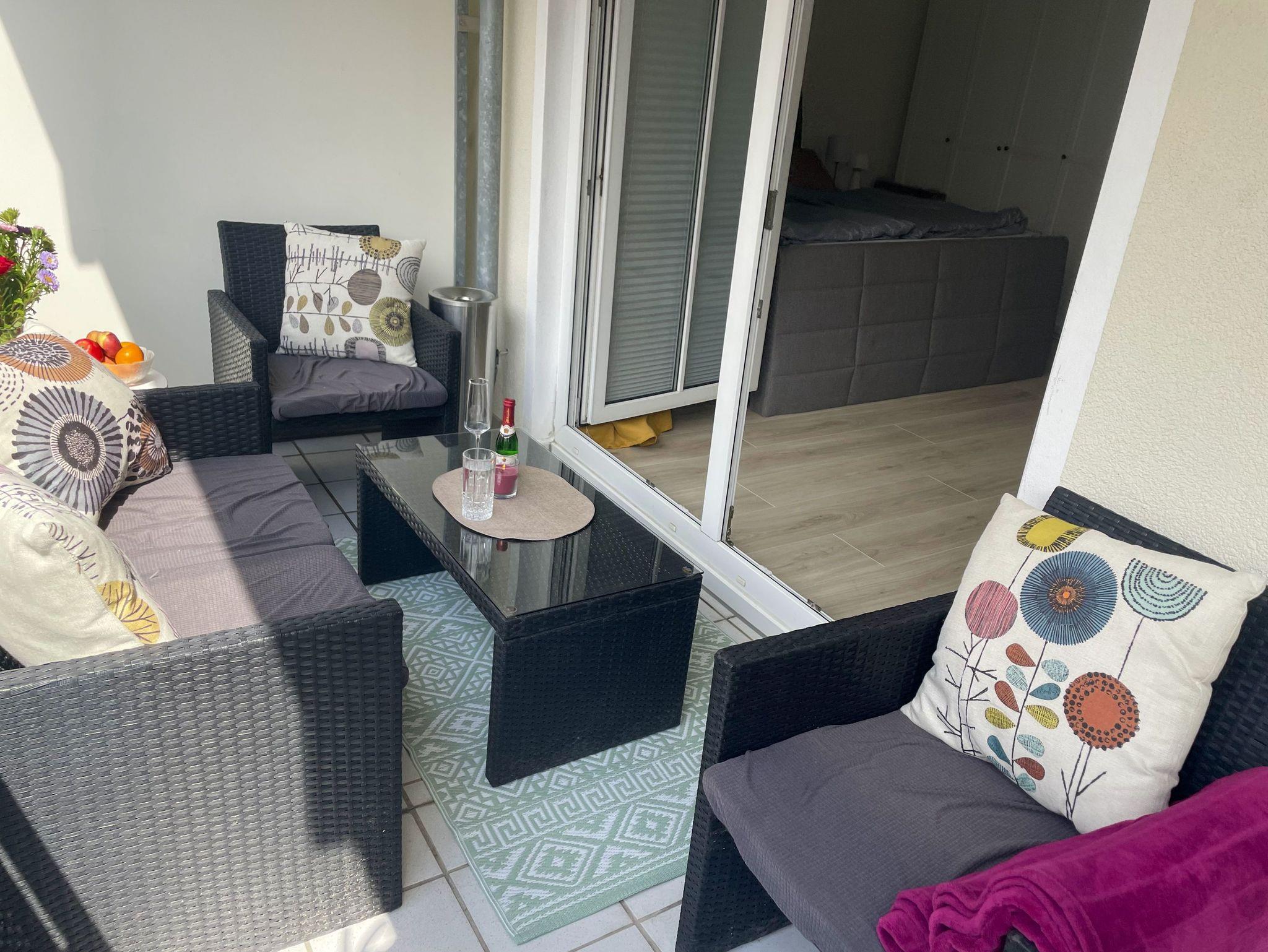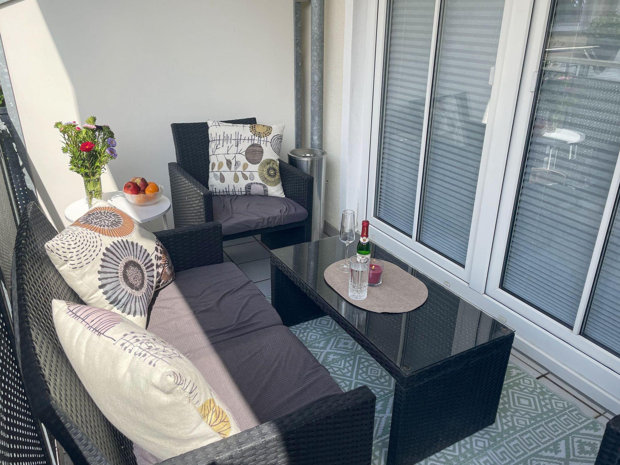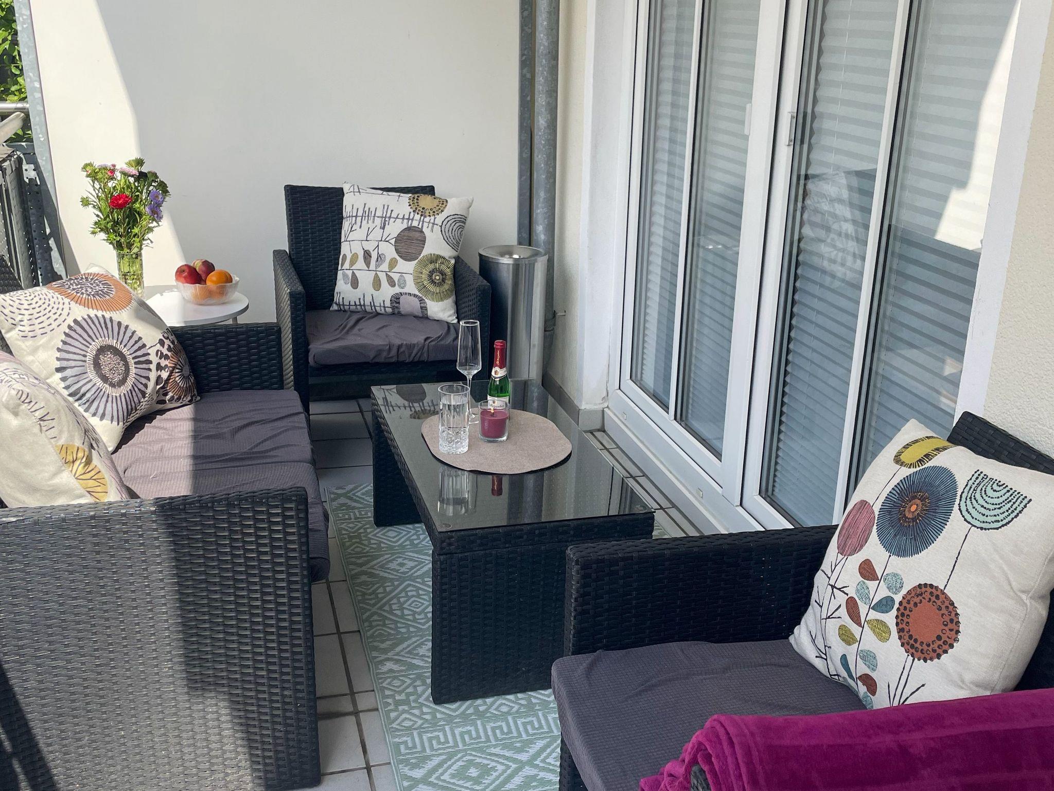 Das Wohnzimmer bietet genügend Platz für einen entspannten Abend und den Tag können Sie auf dem wunderschönen Balkon bei einem Glas Wein oder einem guten Buch perfekt ausklingen lassen.