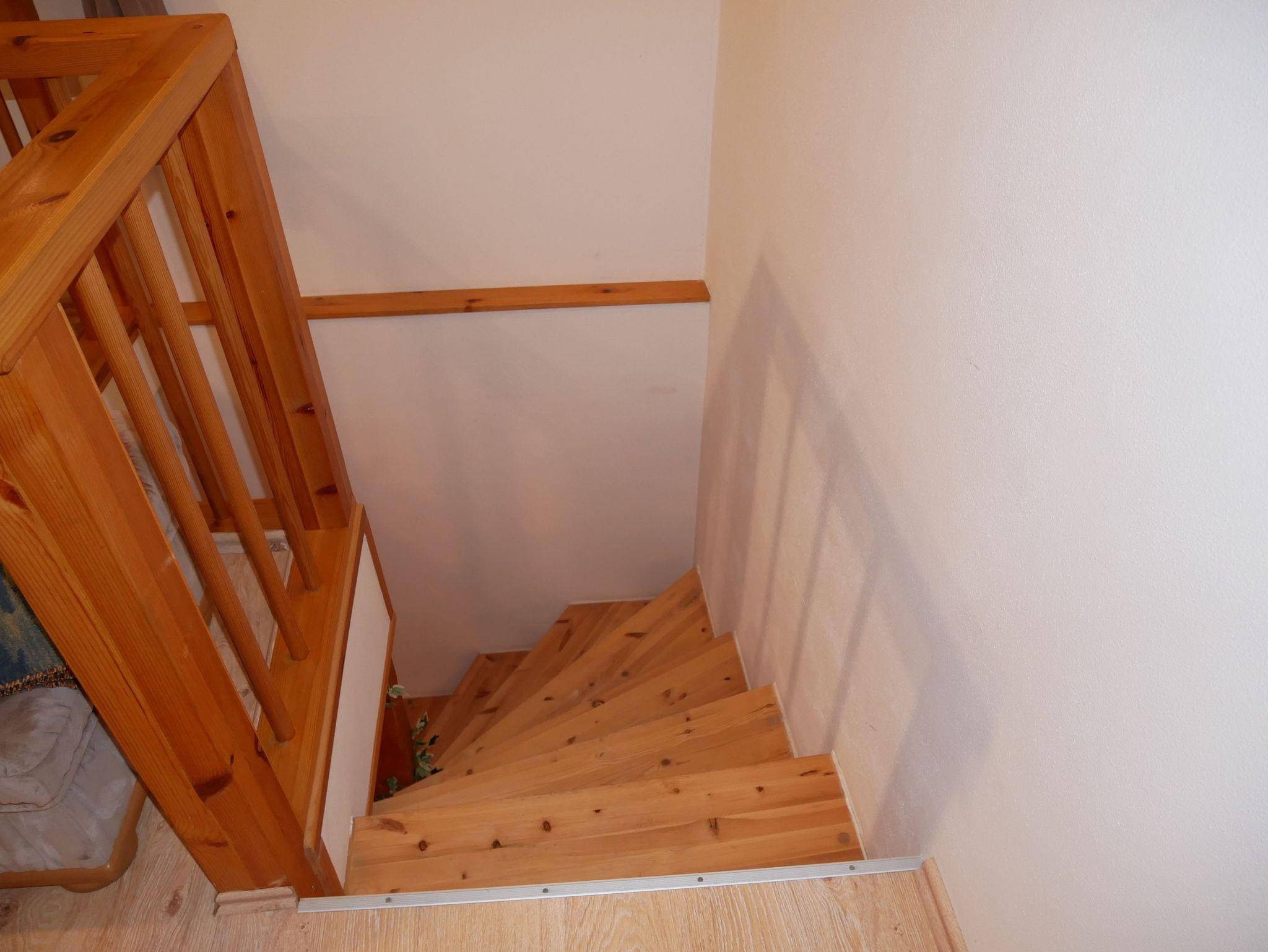 Über eine offene Treppe erreichen Sie die untere Ebene. Dort befindet Sich der Schlafbereich mit Doppelbett (1,80x2,00 Meter). Das Badezimmer ist mit Dusche, Waschbecken und WC ausgestattet.