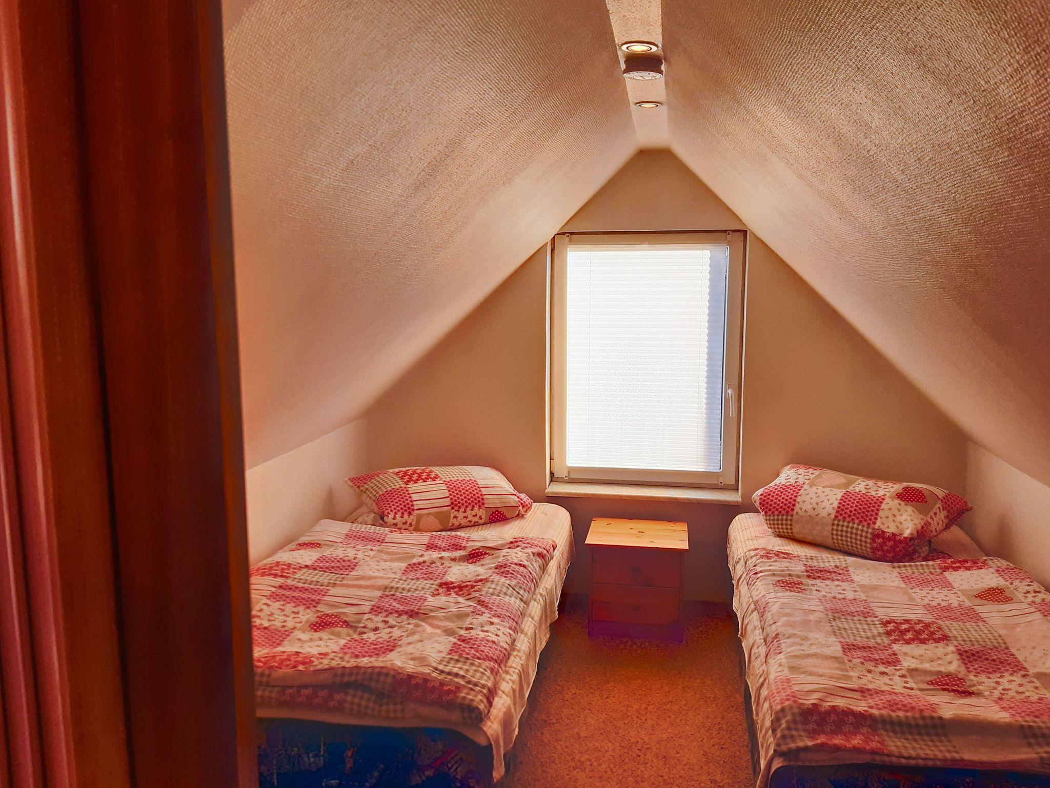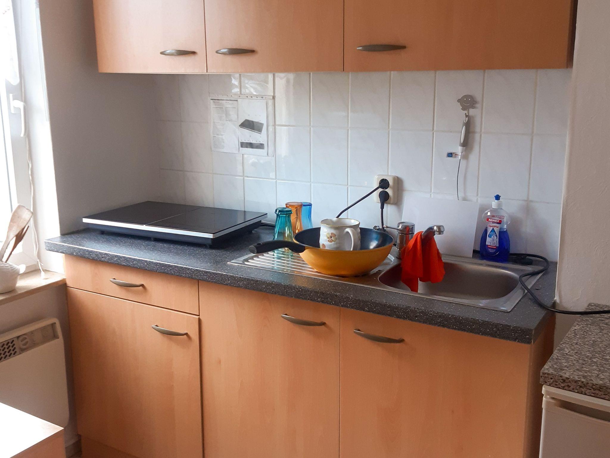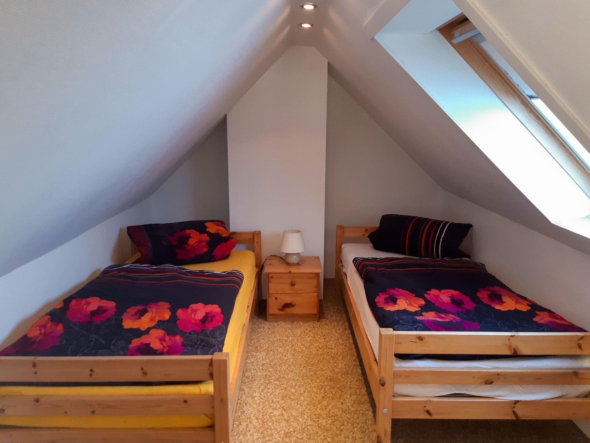 Die Ferienwohnung Schalense bietet dir auf 48 m² eine einfache, aber gemütliche Unterkunft, in der du dich wohlfühlen kannst. Als Maisonettewohnung über zwei Etagen bietet sie Platz für bis zu 4 Personen ? perfekt für einen entspannten Aufenthalt in ländlicher Umgebung. Im Wohnzimmer kannst du es dir auf der großen Eckcouch oder im Sessel gemütlich machen und dabei den TV genießen. Ein Kleiderschrank sorgt dafür, dass du genug Platz für deine Sachen hast. Direkt angrenzend befindet sich die separate Küche, die zwar funktional, aber mit allem Nötigen ausgestattet ist. Hier kannst du dir auf den zwei Induktionskochplatten einfache Gerichte zubereiten oder schnell etwas in der Mikrowelle erwärmen. Ein Kühlschrank, Wasserkocher, Toaster und eine Kaffeemaschine stehen dir ebenfalls zur Verfügung. Vom Wohnzimmer aus führt eine Holztreppe in die obere Etage, wo sich die beiden Schlafzimmer befinden. Jedes ist mit zwei Einzelbetten ausgestattet und bietet dir flexible Schlafmöglichkeiten. Für Familien mit Kleinkindern ist ein Absperrgitter an der Treppe vorhanden, damit du dich auch mit den Kleinsten sicher fühlst. Das Bad im Erdgeschoss ist mit einer ebenerdigen Dusche und einem WC ausgestattet. Draußen wartet die Terrasse auf dich, wo du morgens in Ruhe frühstücken oder abends den Tag gemütlich ausklingen lassen kannst.