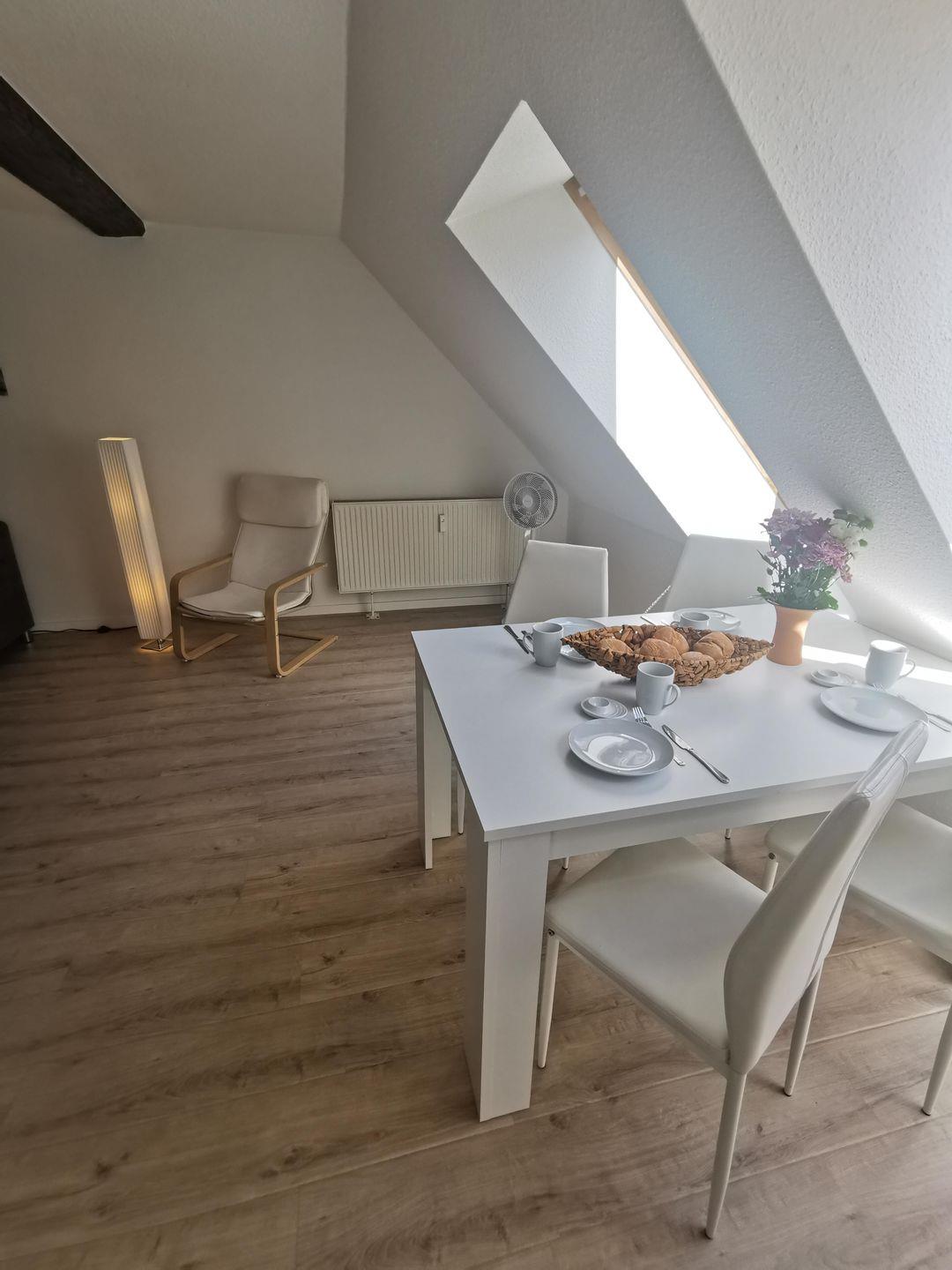 Willkommen in unserer Ferienwohnung im Herzen von Wolgast! Die Wohnung befindet sich in der zweiten Etage eines historischen Gebäudes direkt am Rathausplatz.