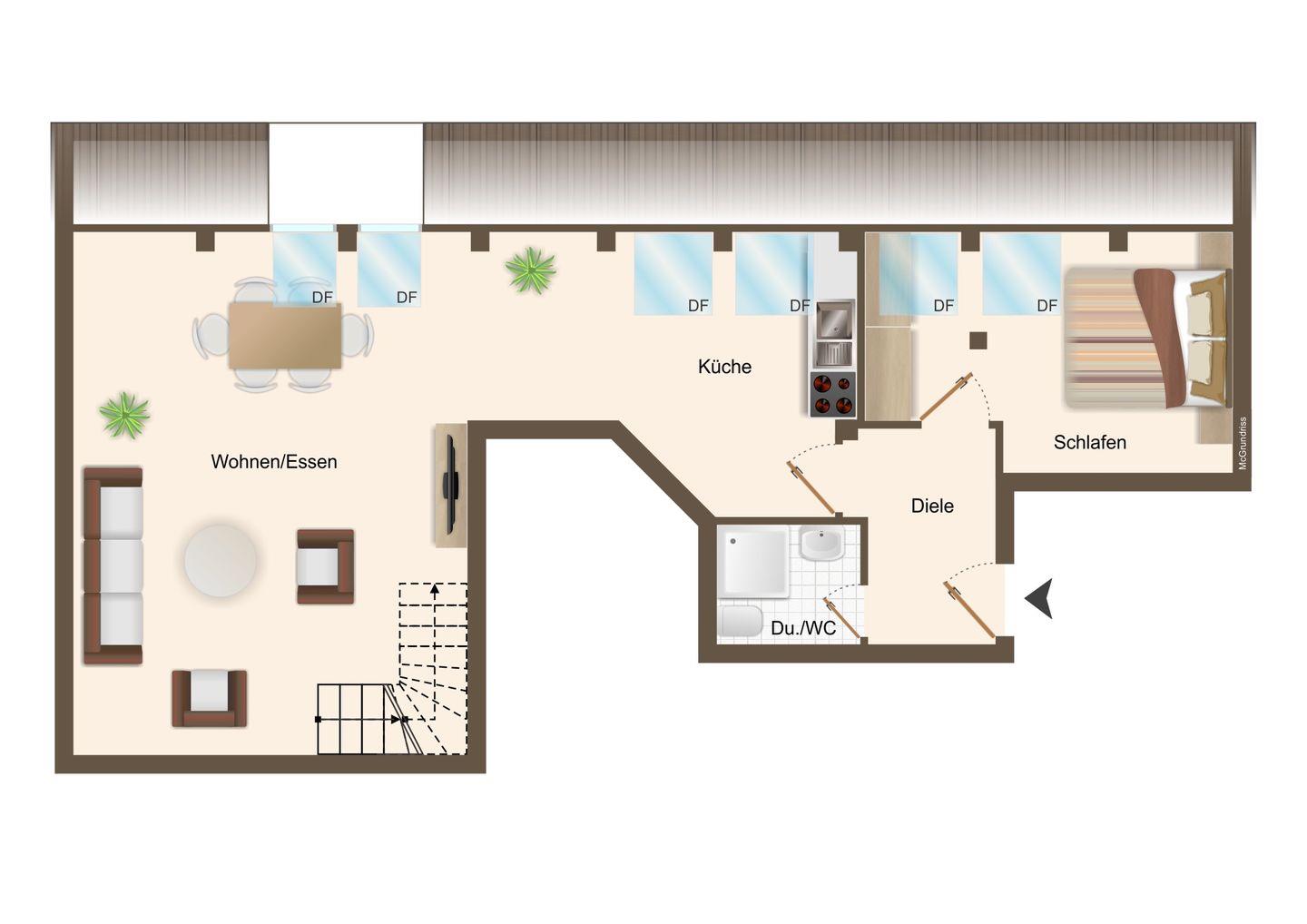Die Wohnung ist geschmackvoll eingerichtet und verfügt über eine warme und gemütliche Atmosphäre, in der Sie sich sofort wie zu Hause fühlen lässt.