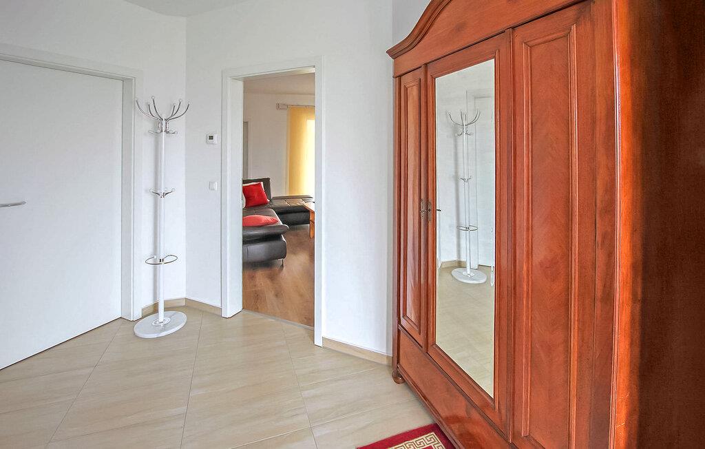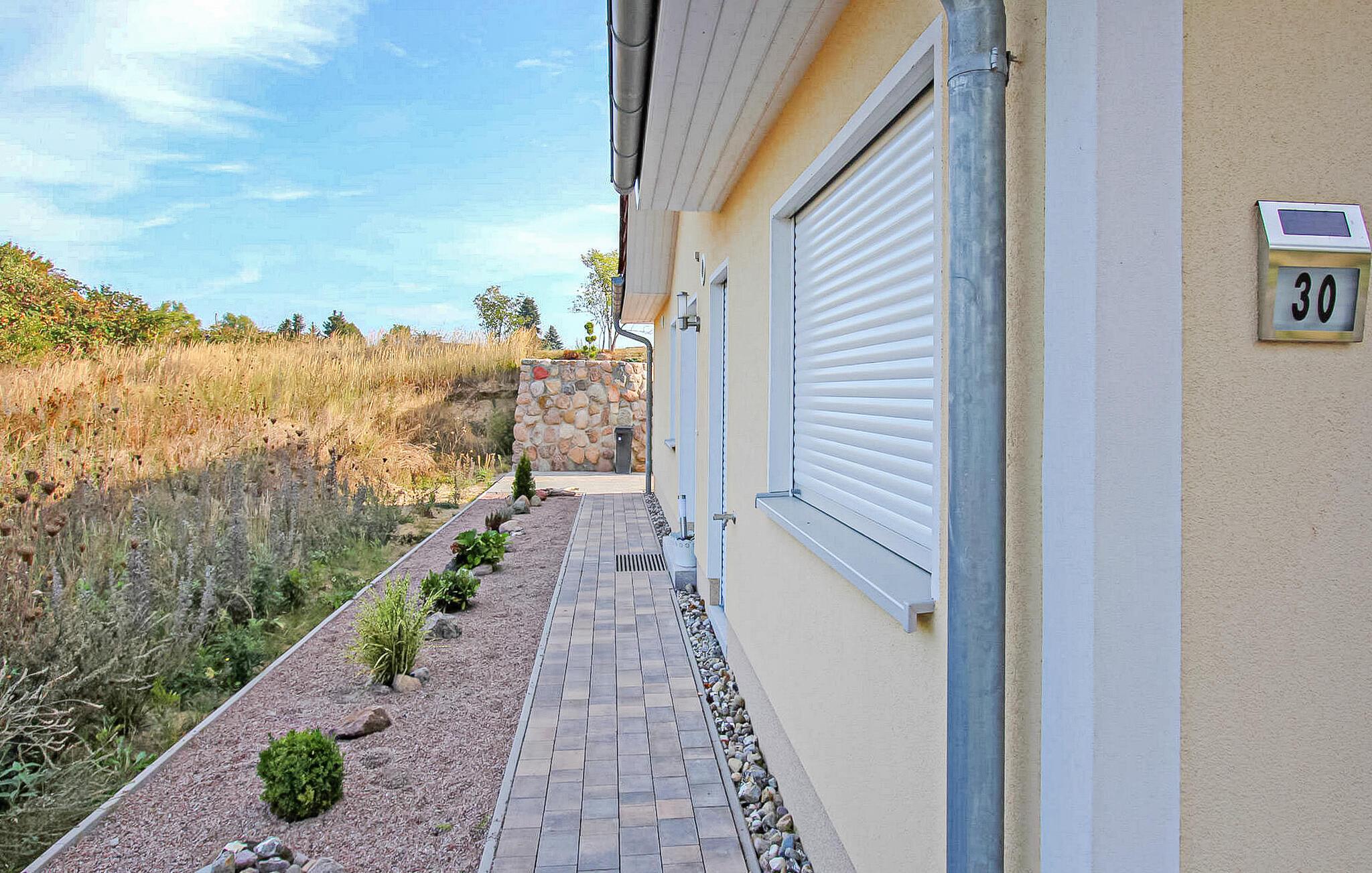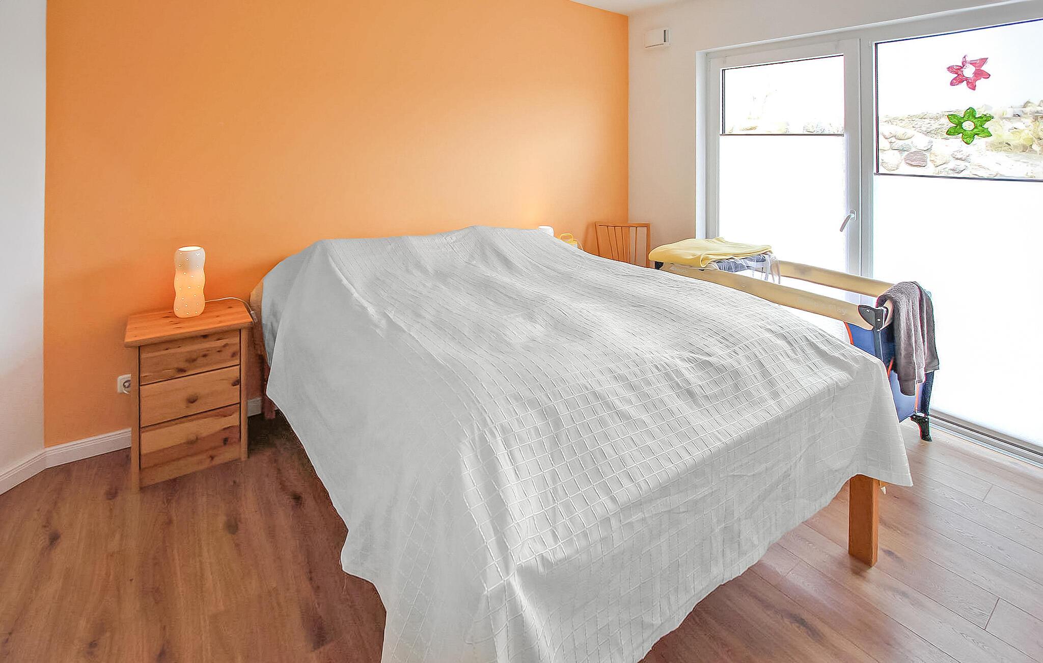 bydelen Mahlzow, inden for synsvidde af Peene og broen af samme navn til Wolgast, i et roligt boligområde på en grund på cirka 600 kvadratmeter, ligger det separate feriehus, nybygget i bungalowstil i 2015, for op til 4 voksne og 1 baby. Indkøbsmuligheder findes i centrum af Wolgast (ca. 15 minutter til fods), der er en sejlerskole i Peene-området og de fine sandstrande Trassenheide eller Zinnowitz kan nås med Usedomer Bäderbahn (stop 5 minutter væk) ). /DVD-afspiller, radio) og et tilhørende åbent, komplet udstyret køkken (spisebord, ovn, miniovn, el-komfur, opvaskemaskine, mikroovn, køleskab, fryser mulighed, forskellige små køkkenapparater), to soveværelser (hver med en dobbeltseng ) med badeværelser (1 x med brus/WC, 1 x med brus/badekar og separat toilet) samt rummelig entre. Hele huset er udstyret med gulvvarme og et moderne ventilationssystem.