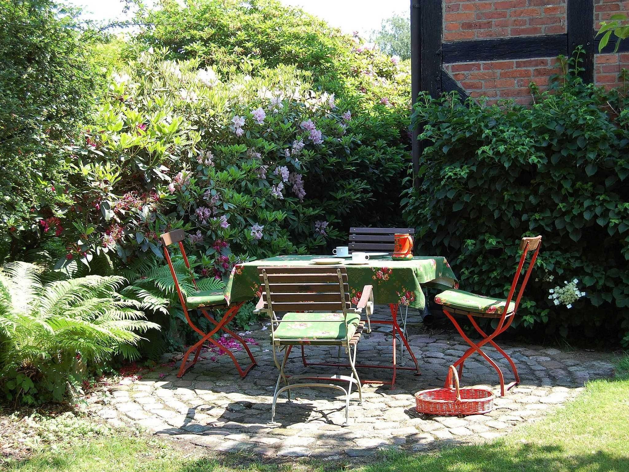Vom Giebel aus geht der Blick in den Garten auf Obstbäume, Sitzplatz und Liegewiese. Der Standort lädt ein, gleich von der Haustür aus per Rad die Landschaft und den Ort mit seinen Sehenswürdigkeiten zu erkunden.