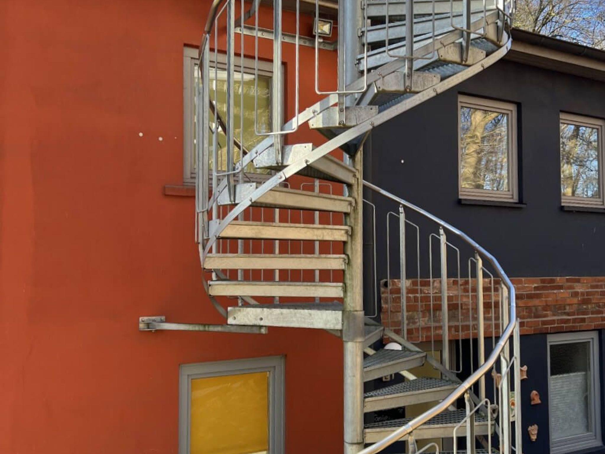 Das Atelier des Künstlers Willi Ohler ist nun über eine schwungvolle Wendeltreppe aus Edelstahl separat erreichbar, chic um- und ausgebaut, neu eingerichtet und wartet auf interessierte Gäste, die ganz oben im Willi Ohler Haus den Traumblick gen Bremen und über den Weyerberg erleben wollen.