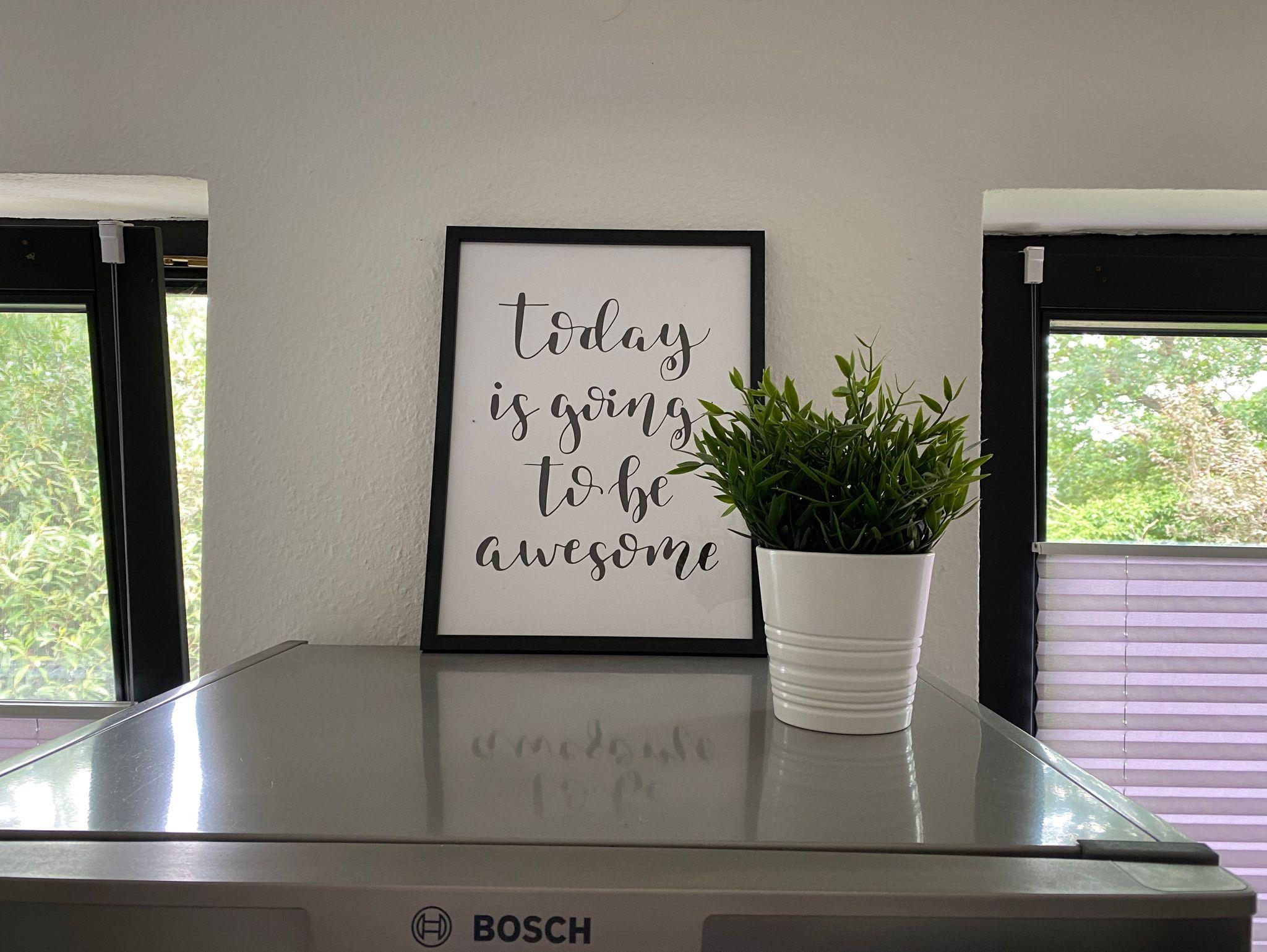 Die Wohnung befindet sich im Obergeschoss, ist sehr hell und hat eine separate Küche und Badezimmer mit Dusche und Badewanne. Ein großer Kühlschrank mit Eisfach steht bereit und sorgt für kühle Getränke. Die Küche ist ausgestattet mit einer Spülmaschine, Backofen, Ceranfeld, Wasserkocher, Toaster und einem Sodamax. Die Bettwäsche und Handtücher werden gestellt.