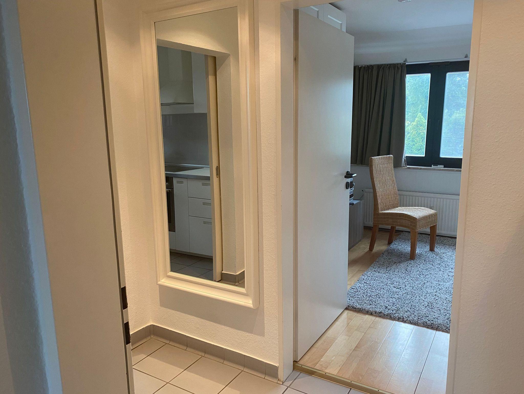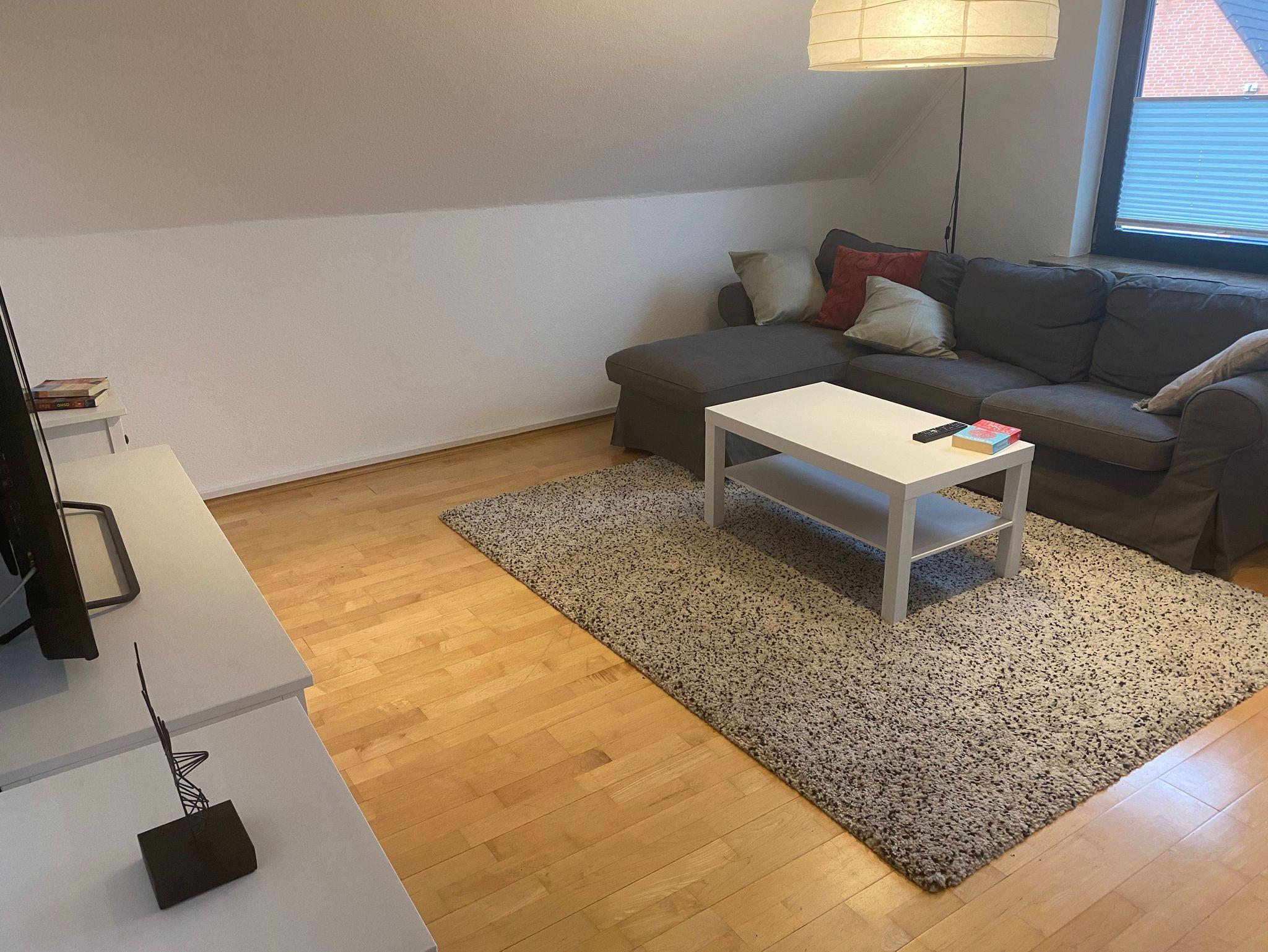 Sie wohnen in einer renovierten gemütlichen Wohnung im Obergeschoss eines Einfamilienhauses. Sie haben ein Wohnzimmer ein Schlafzimmer mit Doppelbett, ein großes Bad mit Dusche und Eckbadewanne, eine separate Küche mit Waschmaschine, Trockner und verfügen über die komplette Küchenausstattung mit einem Kaffee Vollautomaten von DeLonghi, so wie ein zweites Schlafzimmer mit einer Schlafcouch. Das Haus befindet sich schräg gegenüber dem Kunstcentrum Alte Molkerei.