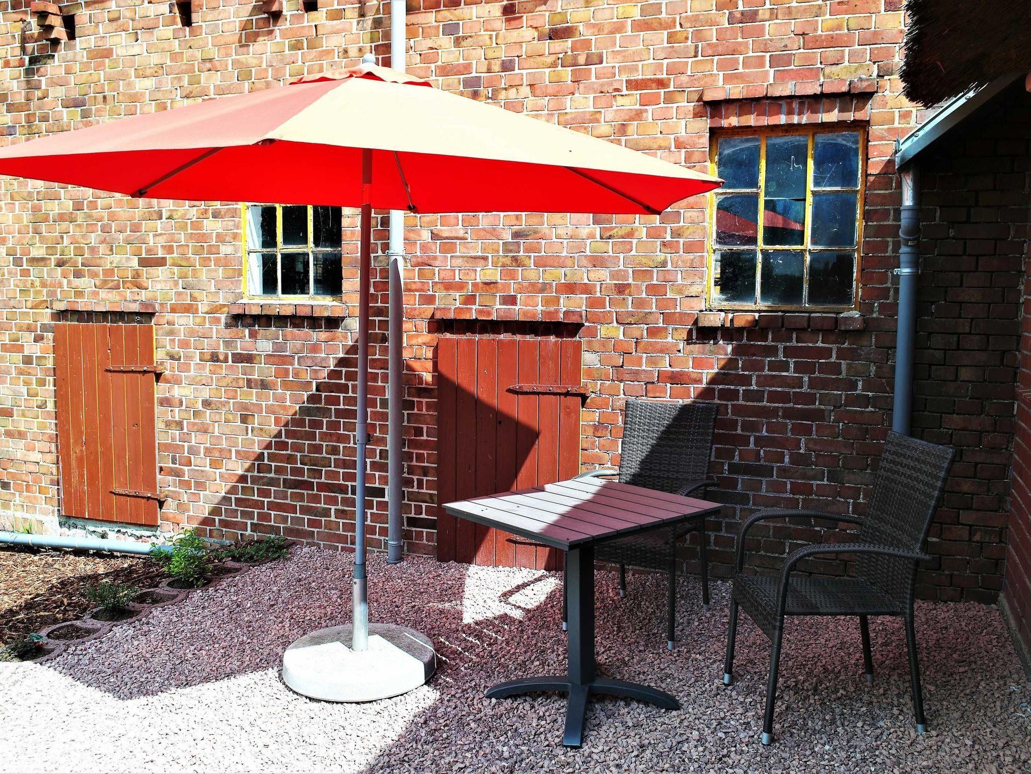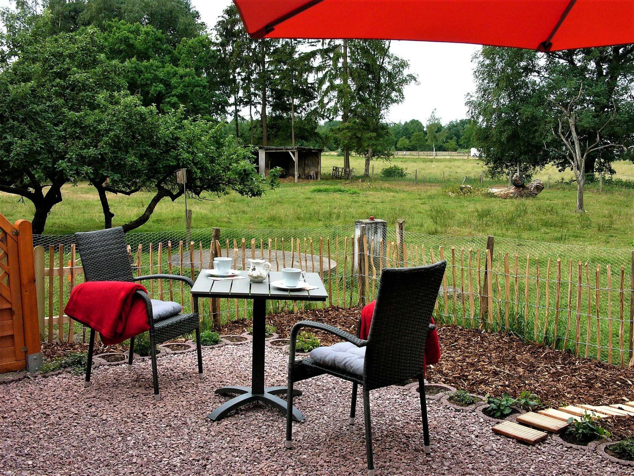 Das Apartment ist im Landhausstil eingerichtet, die Holzbalken sind sichtbar geblieben. Auf der Terrasse hat man den Blick auf die Abendsonne. Gäste erreichen die Unterkunft über einen Vorraum, in dem auch Fahrräder abgestellt werden können, es gibt keine Stufen.