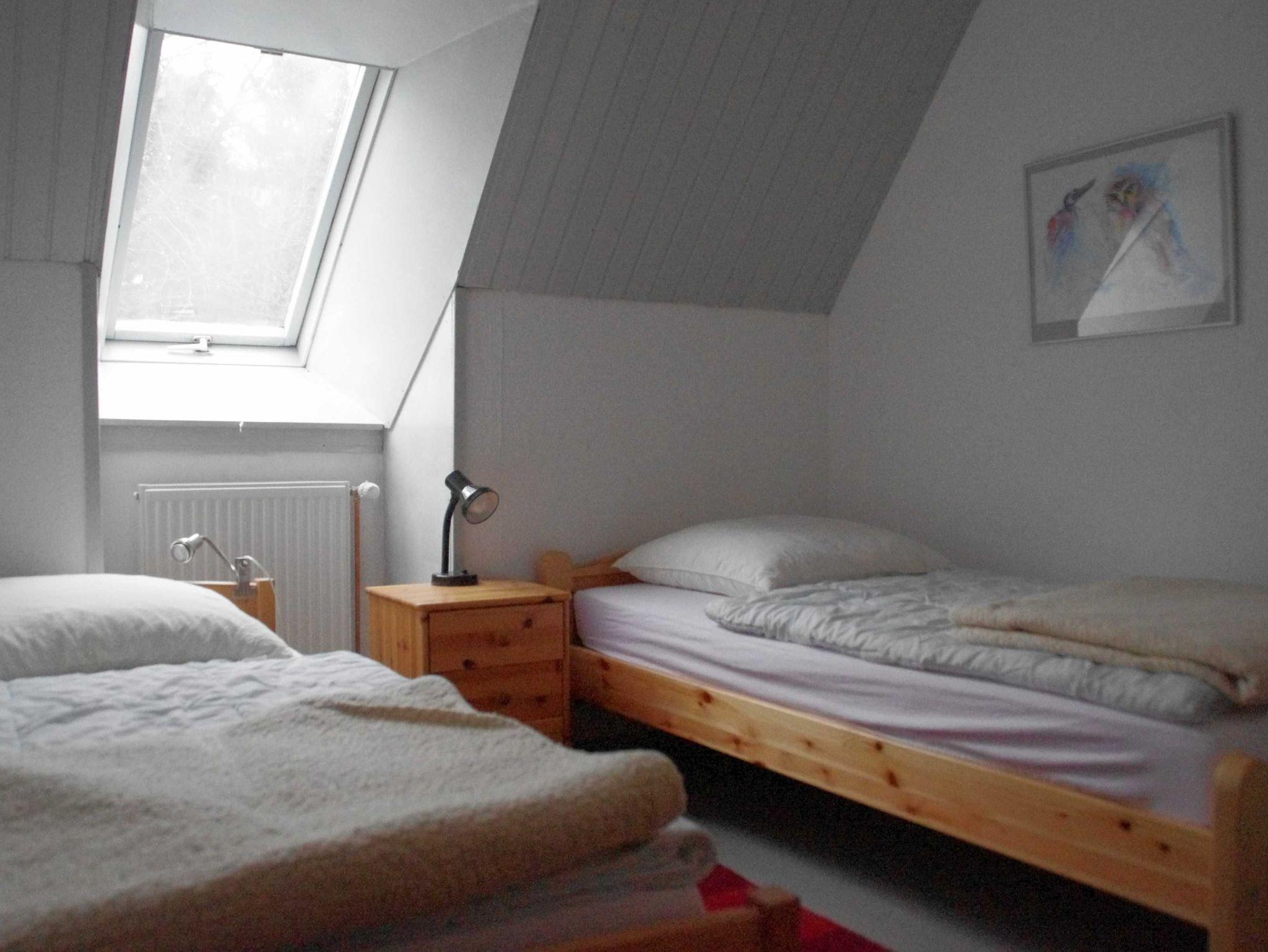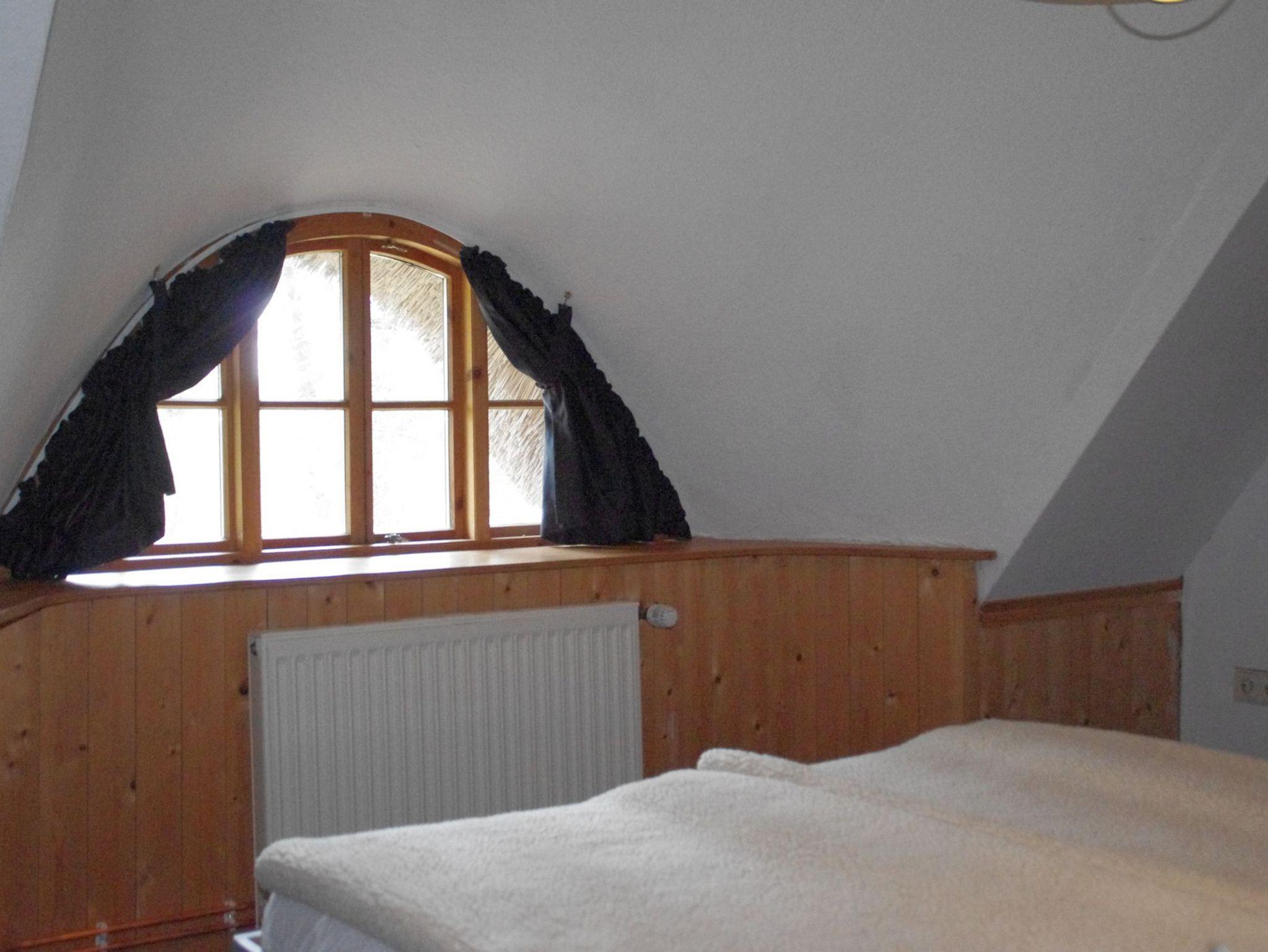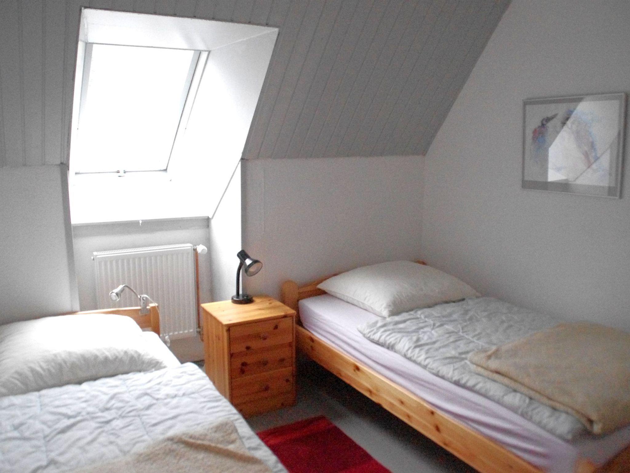 Die originelle bequeme Wohnung (ca. 50 qm) unter den Gauben bietet Platz für fünf Personen. Zwei Schlafzimmer: Eins mit Doppelbett unter der Gaube, ein Zweibettschlafzimmer und im Wohnzimmer eine bequeme Schlafgelegenheit. Küche, Essplatz, Duschbad und Terrasse, Internetanschluss..