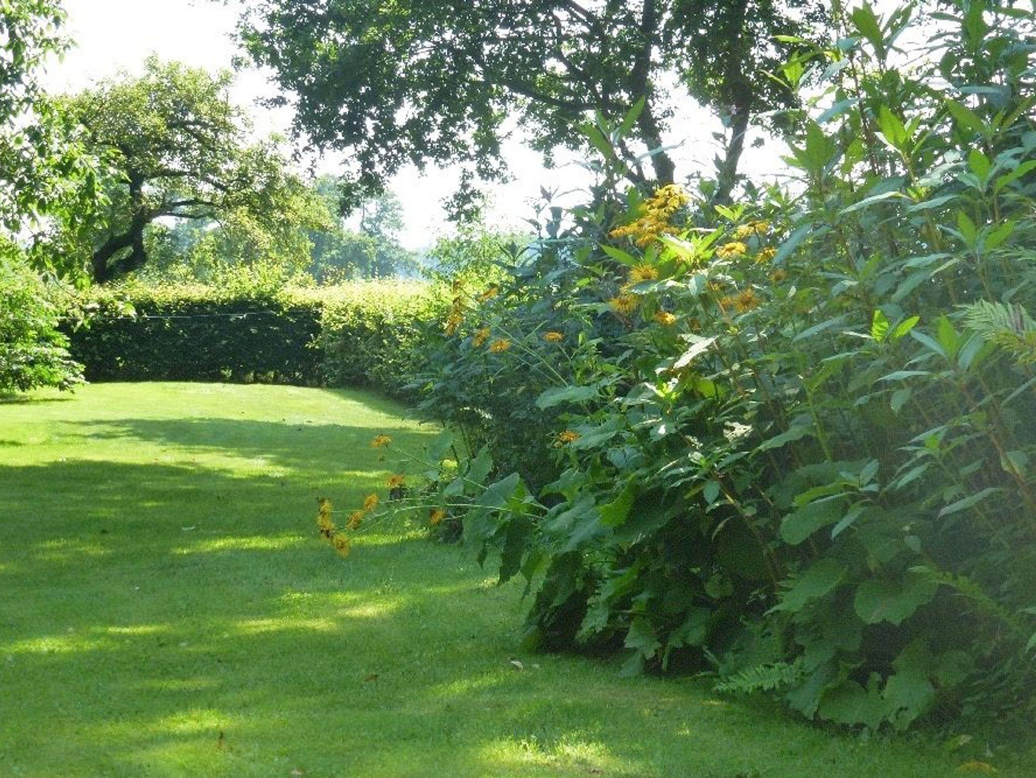 Der große parkähnliche Garten ist Teil des Ambientes und kann zum Ausspannen oder gemütlichen Zusammensitzen genutzt werden. Im Haupthaus kann nach Absprache auch der Gruppenraum genutzt werden. Z. B. zum Musizieren auf dem Flügel.
