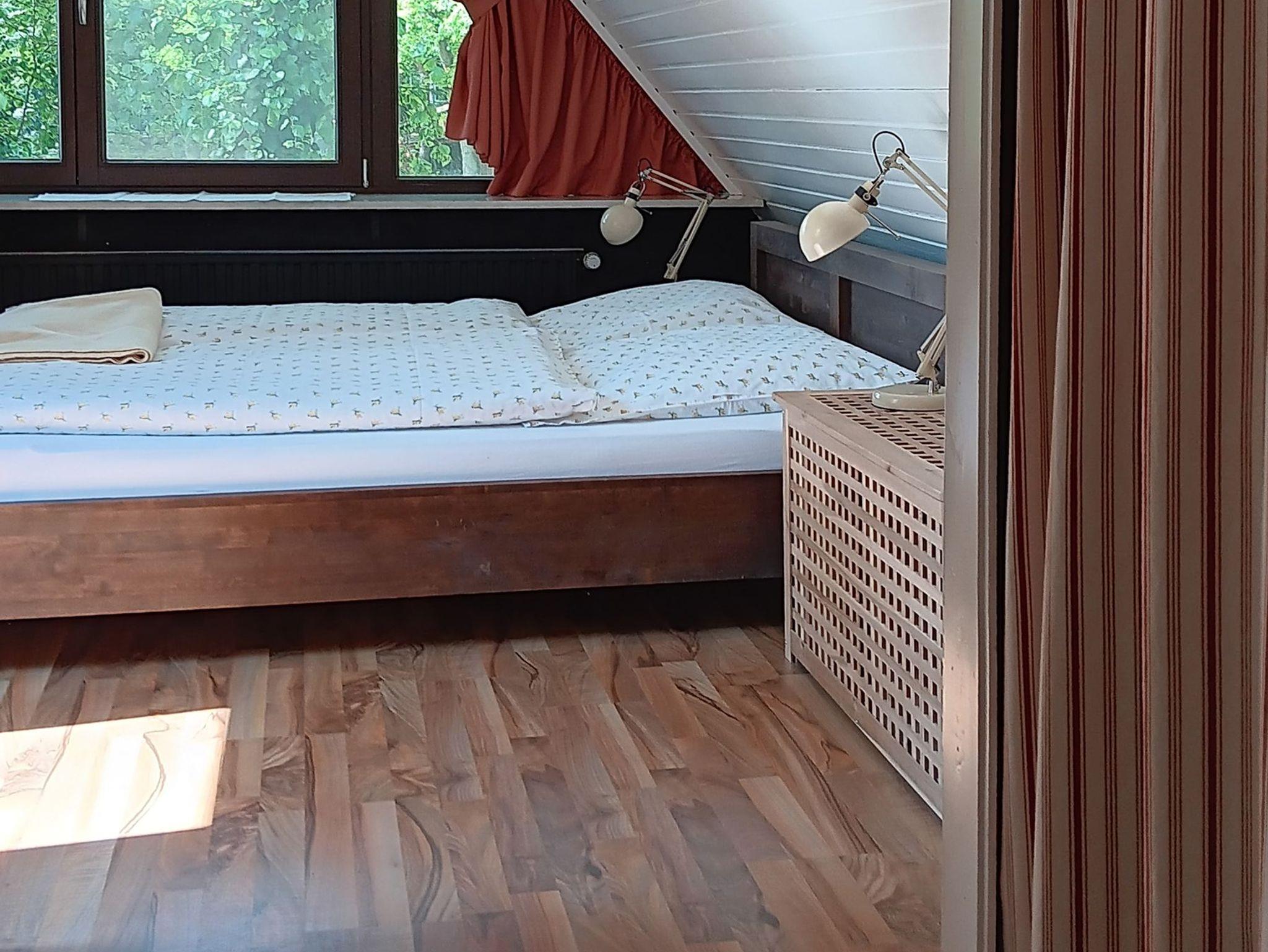 Der 22 qm große Wohn-Schlafraum mit kleiner Küchenzeile und separatem Duschbad/WC, Ausrichtung Süd-Westen, liegt im Dachgeschoss des Hauses. Das Appartement ist mit einem Satellitenfernsehen ausgestattet. Geeignet für ein bis zwei Personen, für die es ein Doppelbett (1,60 m breit) gibt. Preis inklusive Bettwäsche, Handtücher und Endreinigung. Nichtraucher, separater Eingang, Sat-Fernseher, Stereoanlage mit CD-Player, Haartrockner, Kühlschrank, Kühlfach, Induktonsherd mit zwei Platten, Kaffeemaschine, Wasserkocher, Toaster, WLAN.