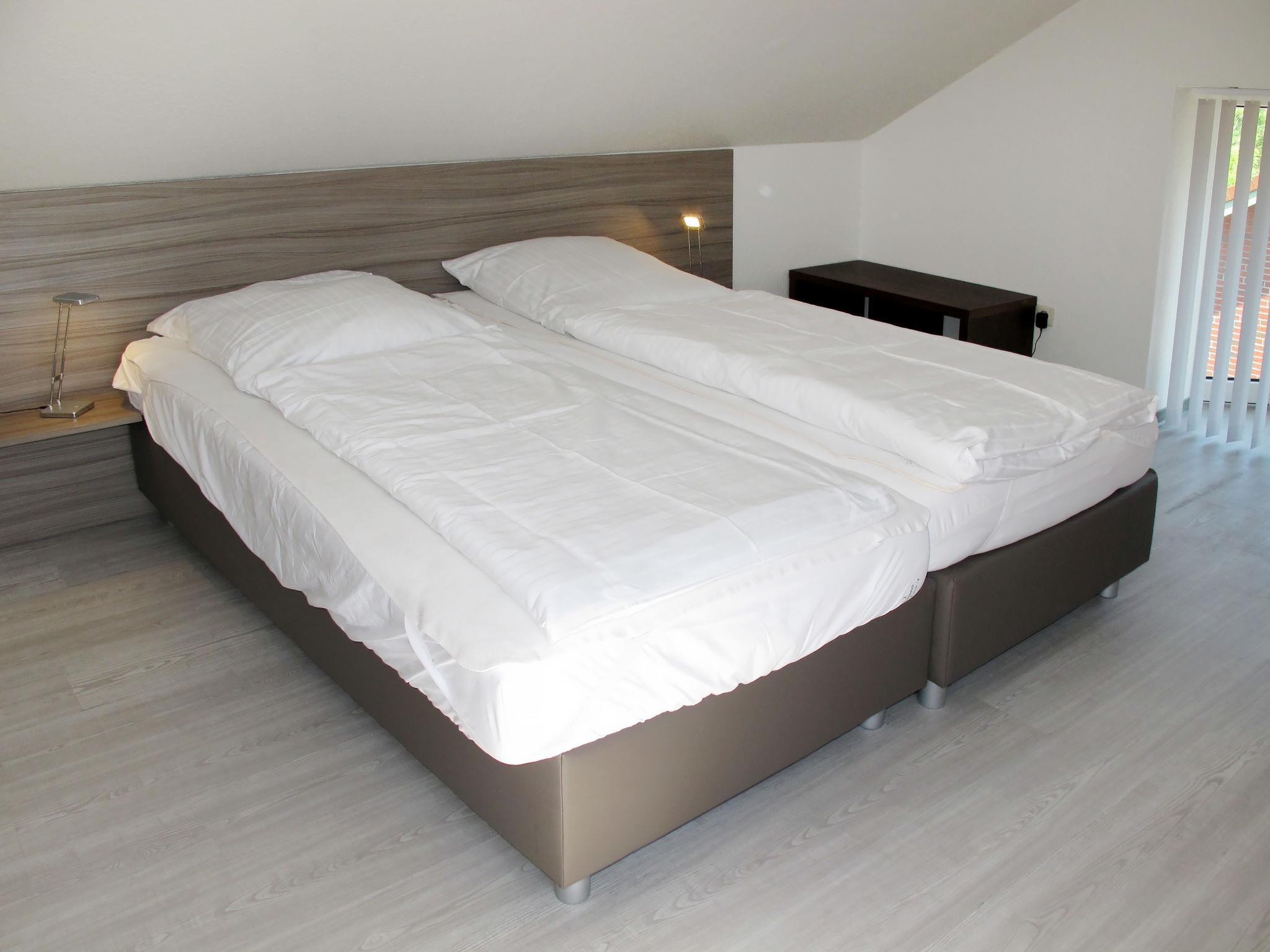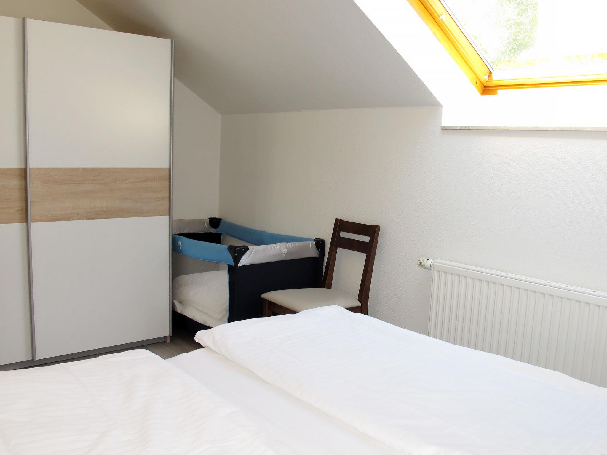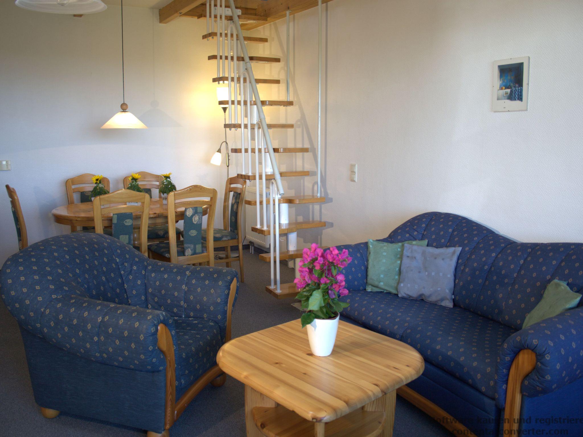 2-room apartment 70 m2 on 2 levels on 2nd floor. Tasteful furnishings: living/sleeping room with 2 sleeping facilities, dining table and satellite TV. Exit to the balcony. 1 double bedroom. Open kitchen (4 hot plates, toaster, kettle, microwave, electric coffee machine). Shower/WC. Gas heating. Upper floor: (steep stair) open gallery with sloping ceilings with 2 beds. Balcony furniture. Facilities: children's high chair, baby cot. Please note: maximum 1 pet/ dog allowed. Smoke alarm, fire extinguisher. Instead of an enclosed bedroom, some sleeping areas are located in an open-plan area (gallery, alcove, etc.).