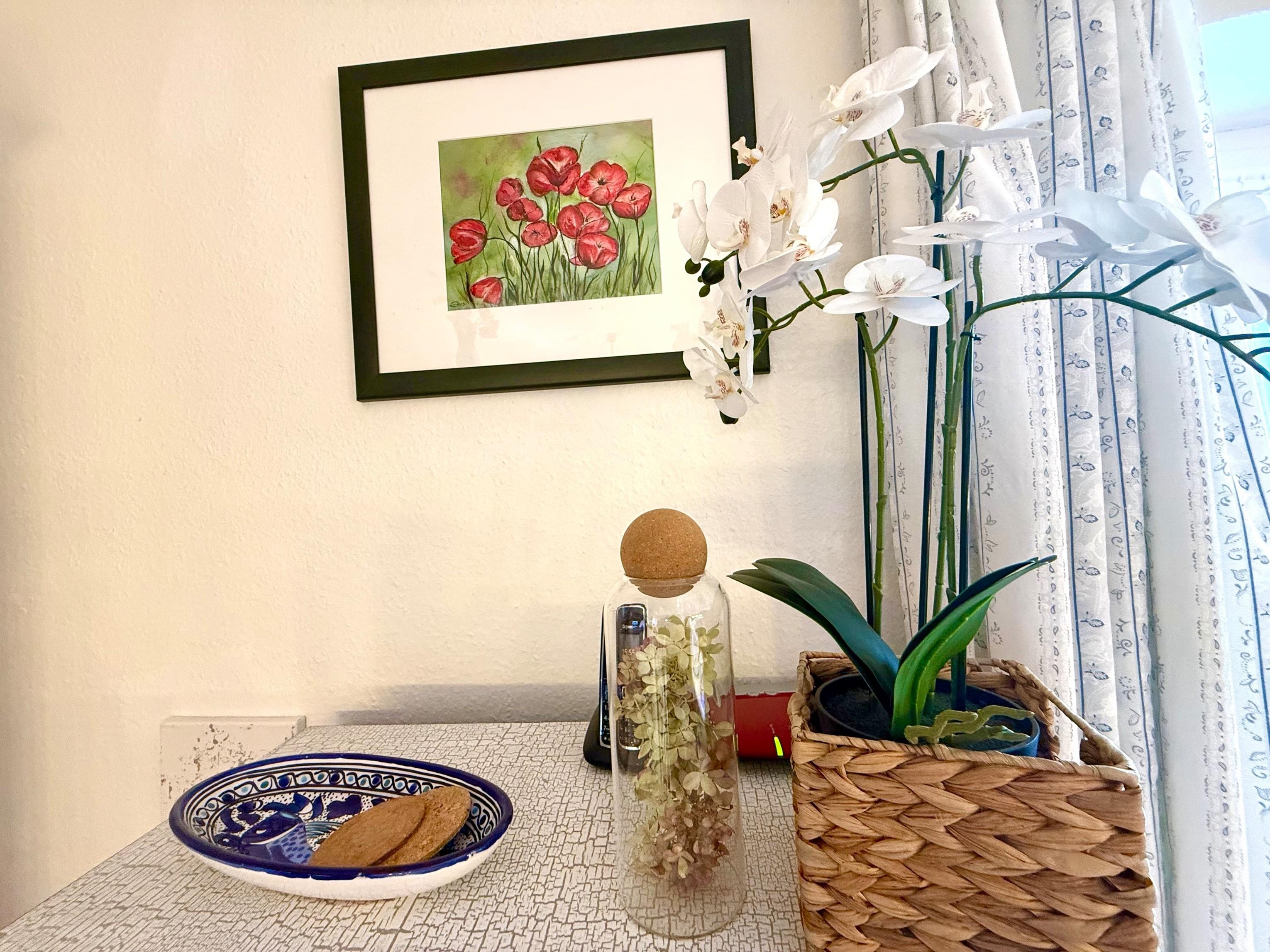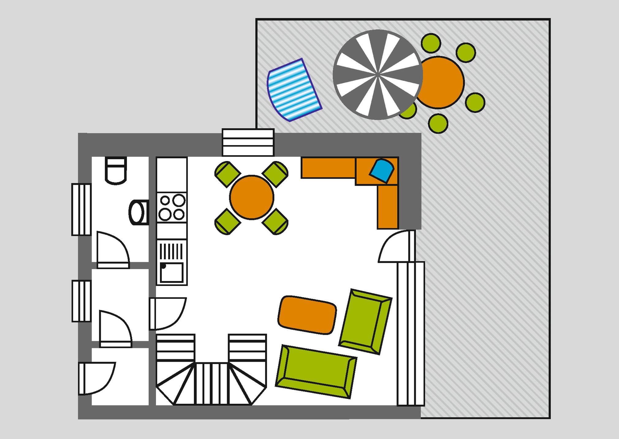 Die Haushälfte ist individuell mit vielen schönen Details ausgestattet und schafft eine behagliche und wohnliche Atmosphäre. Der Garten mit Strandkorb und Sonnenliegen lädt zum Entspannen ein. Und sollte das Wetter mal nicht so schön sein, steht im Wohnzimmer ein Smart-TV mit über 250 Kanälen, eine Stereoanlage mit Bluetooth und ein DVD-/blu ray-Player zur Verfügung. Apps wie Netflix, Amazon Prime, Disney+ und Co. sind auf dem Fernseher vorinstalliert und bieten die Möglichkeit, mit dem eigenen Account die Lieblingsserie weiterzuschauen.