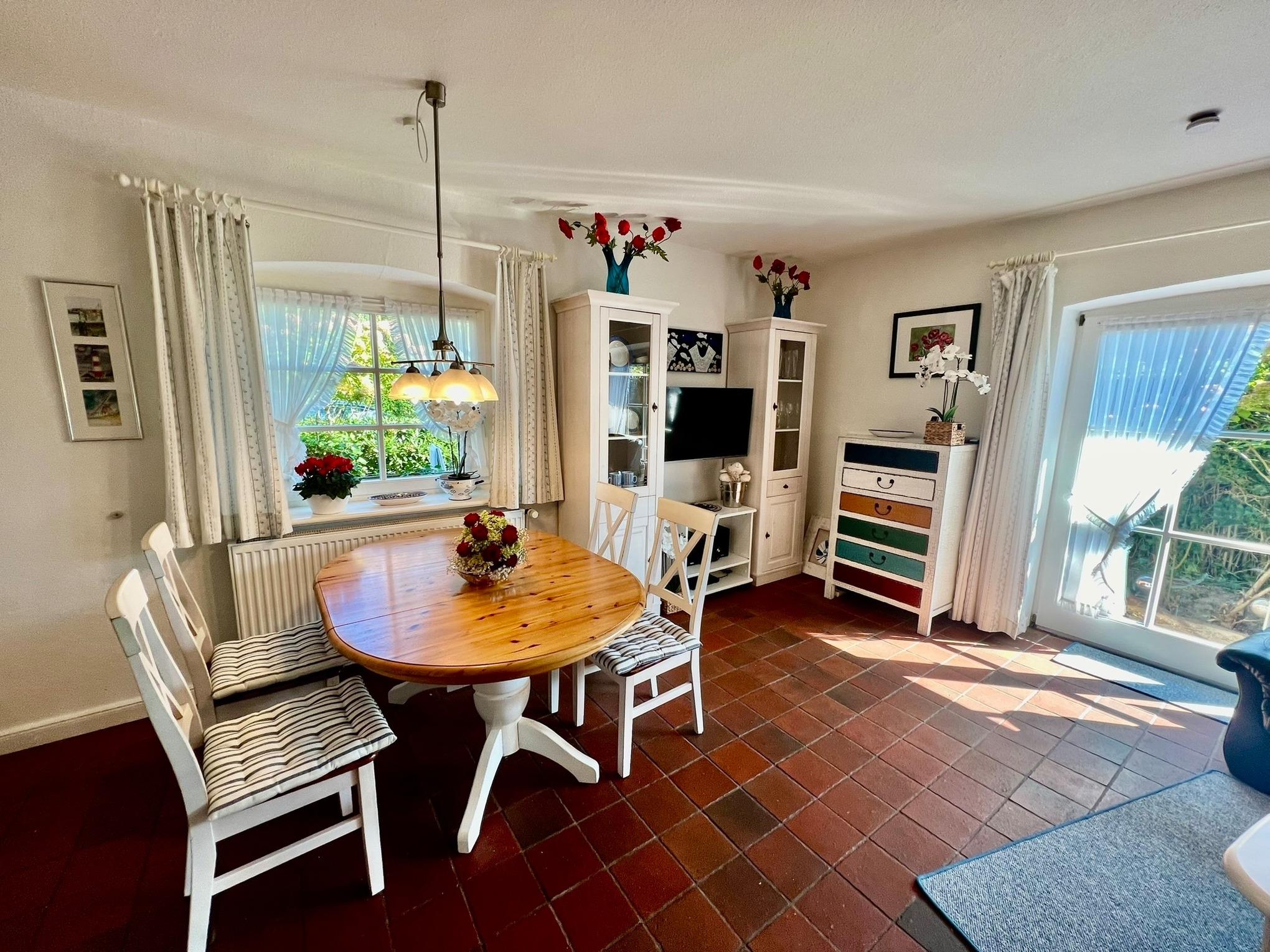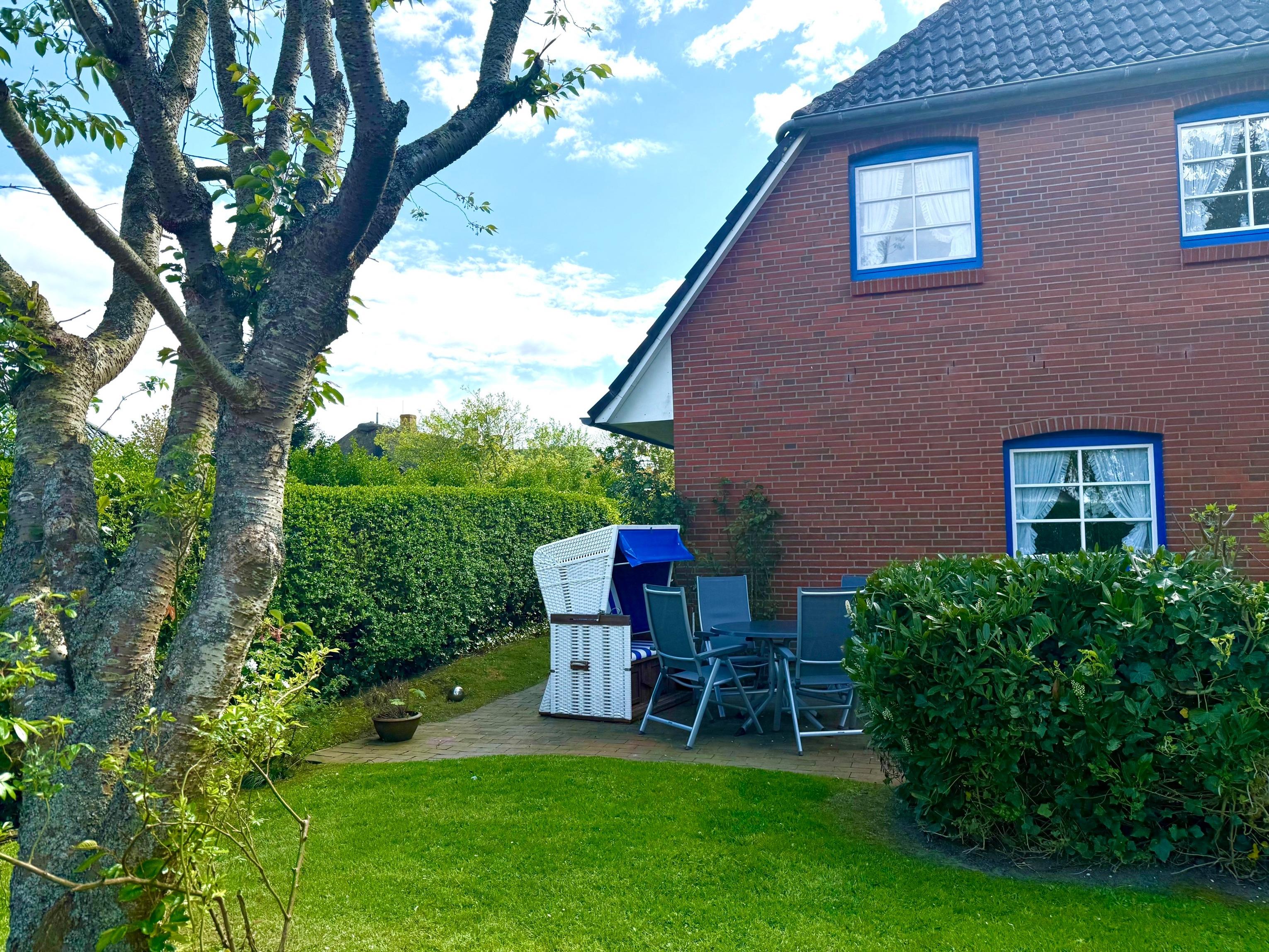 Unser gepflegtes und liebevoll eingerichtetes Doppelhaus liegt gegenüber der Marsch, eingebettet in einen kleinen Nachbarort von Wyk mit dörflichem Charme. Hier hat man auch im Hochsommer einen Platz der Abgeschiedenheit und Ruhe und ist trotzdem vom Innenstadtbereich von Wyk mit seinen Geschäften und der Strandpromenade nur etwa 5-10 Fahrradminuten entfernt.