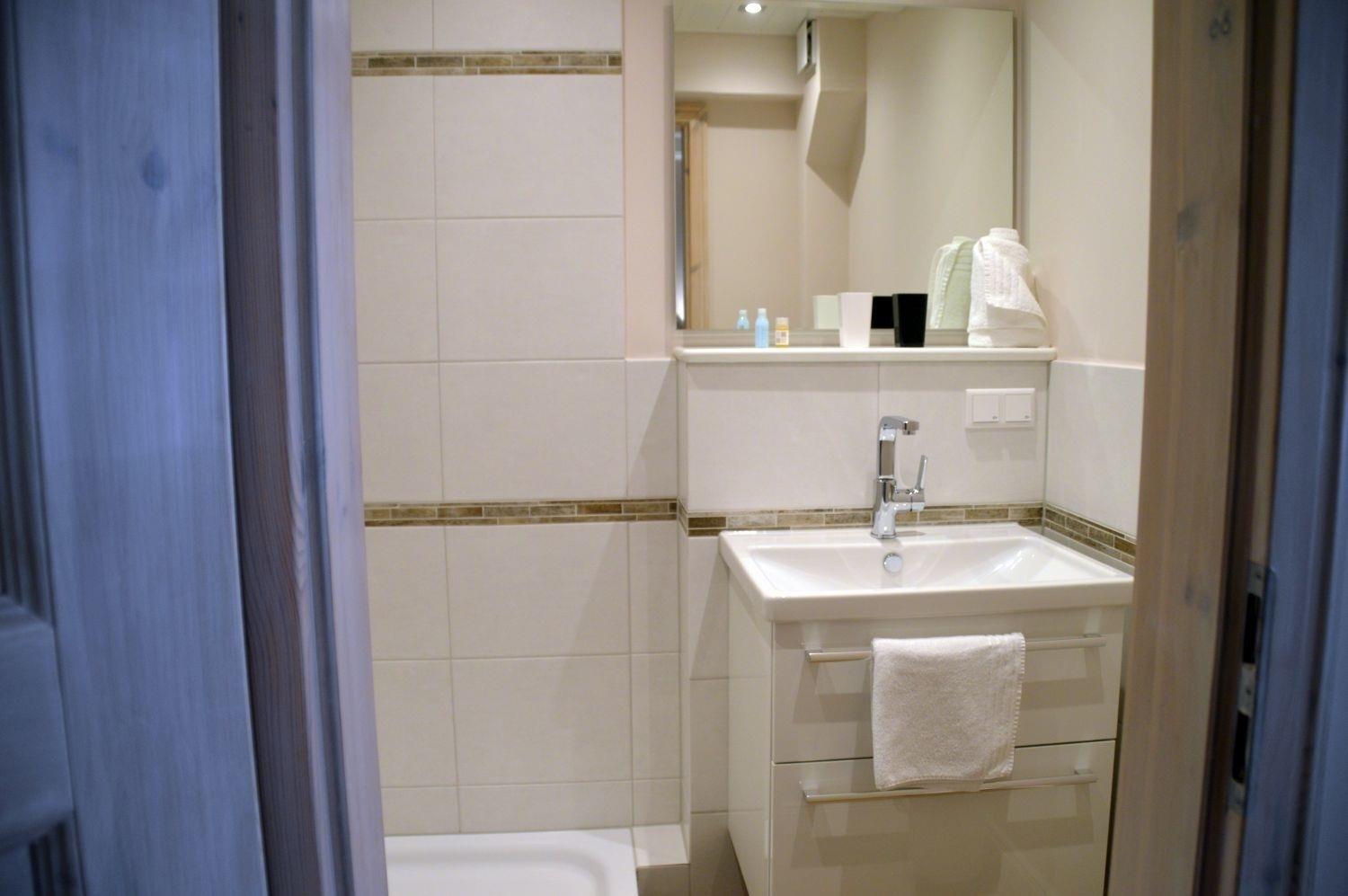 Im Erdgeschoß befindet sich die moderne und voll ausgestattete Küche, ein Gäste WC und das geschmackvoll eingerichtete Wohnzimmer. Die Terrasse ist direkt vom Wohnzimmer aus zu erreichen. Im Obergeschoß befinden sich die zwei Schlafzimmer und das Bad.