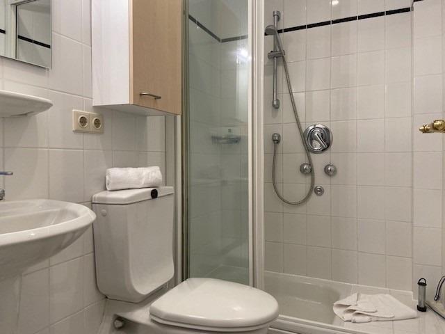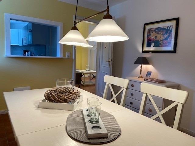 Von dem großzügigen Wohn-/Essbereich gelangt man in die separate Küche. Mit Geschirrspüler, Cerankochfeld und einem erhöhten Mikrowellenbackofen wird man gerne auch einmal zum Selbstversorger. Die Wohnung wurde in sonnigen Farben gestaltet und komplett mit in einem warmen Farben gehaltenen Fliesenboden ausgestattet, so dass man sich in liebevoller Atmosphäre gut entspannen kann. Das innenliegende Duschbad ist hell und zweckmäßig ausgestattet. Das Schlafzimmer ist mit einem Doppelbett ausgestattet.