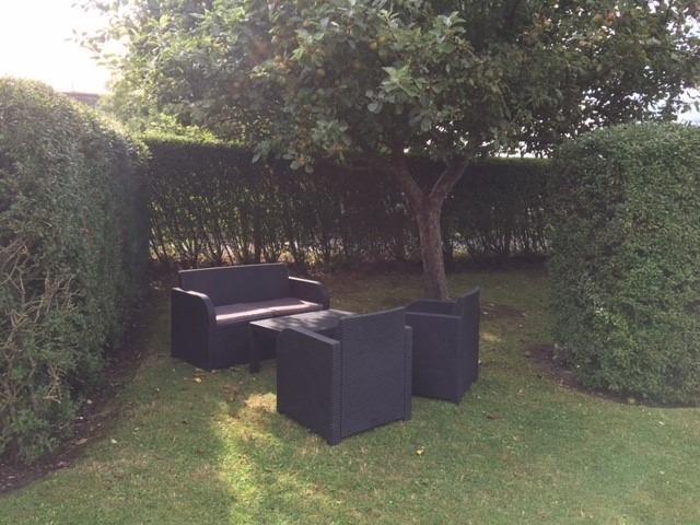 Zur Wohnung gehört natürlich ein kostenloser PKW-Stellplatz, eine wunderschöne Gartenecke mit Sitzgelegenheiten, eine gemeinsame Liegewiese mit schattenspendenden Obstbäumen.