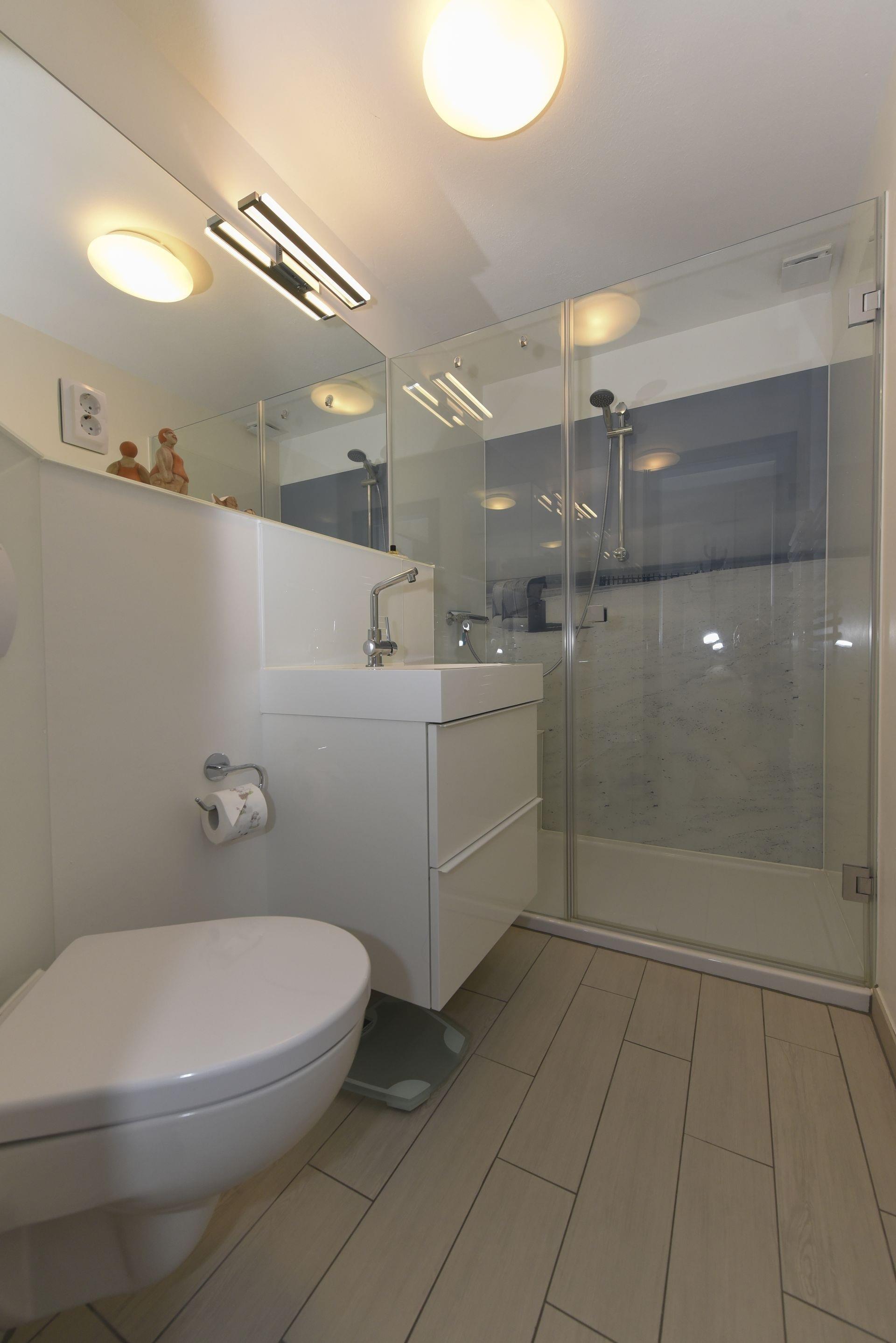 Im Obergeschoss erwarten Sie zwei behagliche Schlafzimmer, darunter typische friesische Alkoven-Betten, die für einen besonders erholsamen Schlaf sorgen. Das frisch renovierte Duschbad im Obergeschoss ist ein weiteres Highlight. Zudem steht Ihnen im Erdgeschoss ein Gäste-WC zur Verfügung.