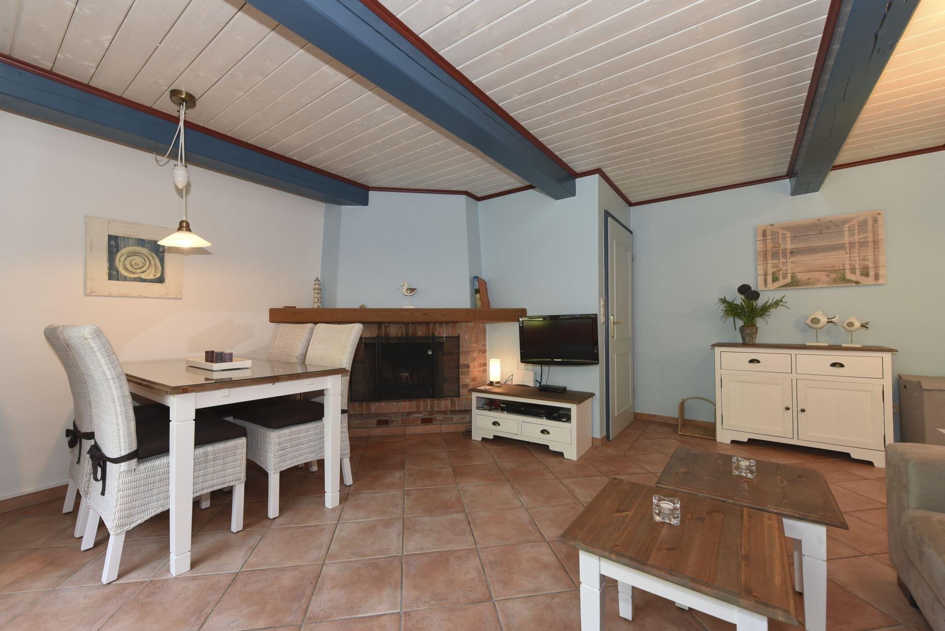 Sie ist liebevoll im nordischen Stil eingerichtet: Holz und helle Farben schaffen eine warme, einladende Atmosphäre, während ein Kamin für gemütliche Stunden sorgt. Die separate Küche ist vollständig ausgestattet und lässt keine Wünsche offen.