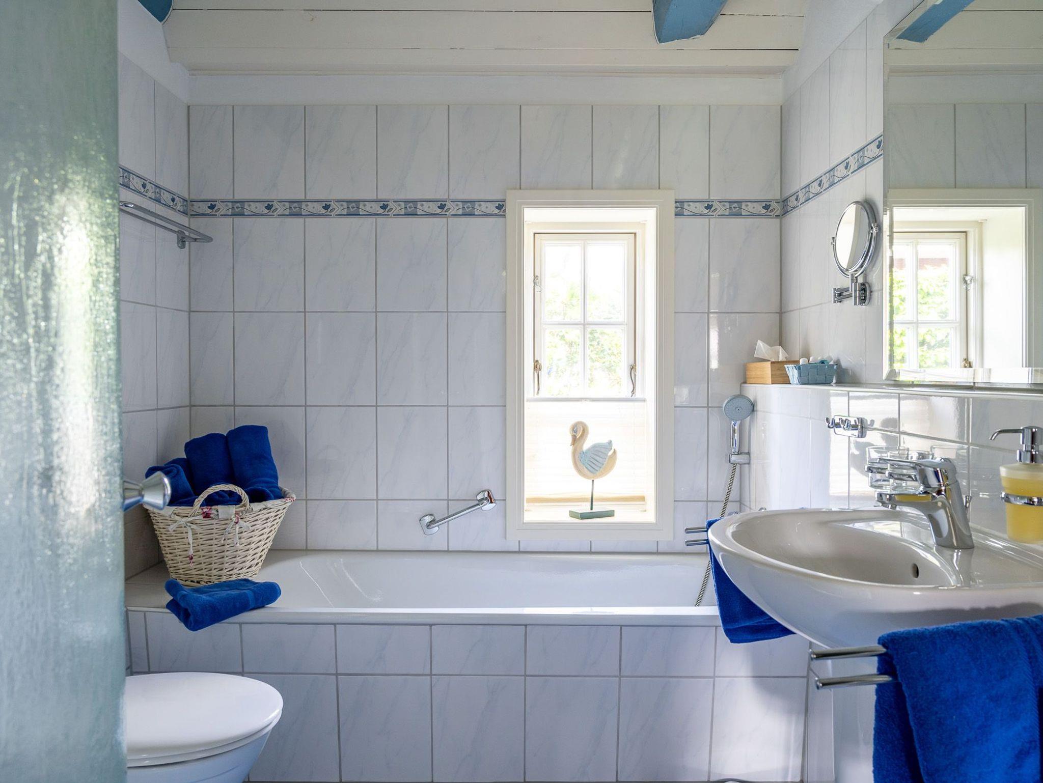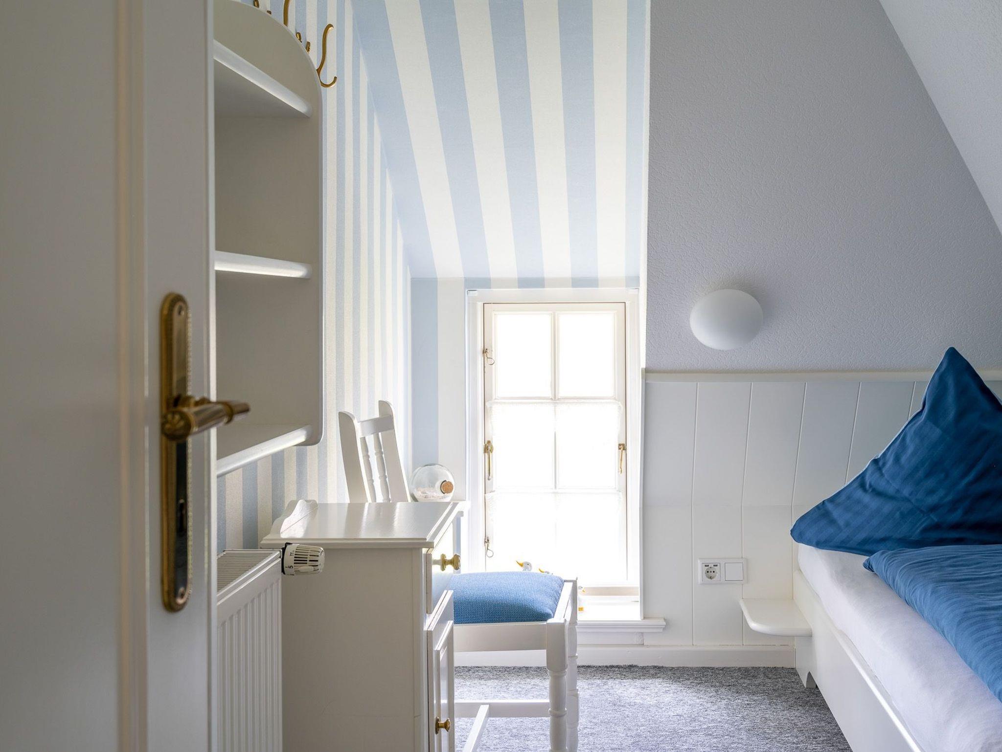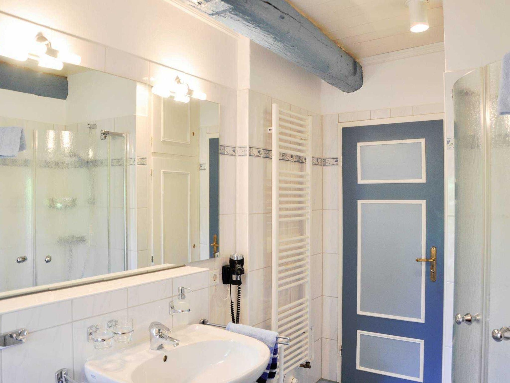 In dieser hellen und freundlichen Marschsuite fühlen Sie sich sofort zu Hause. Neues Mobilar und ein komfortables Dusch-und Wannenbad wurde dem friesischen Karakter des Hauses angepasst. Genießen Sie den Blick über die weite grüne Marsch und die RUHE!