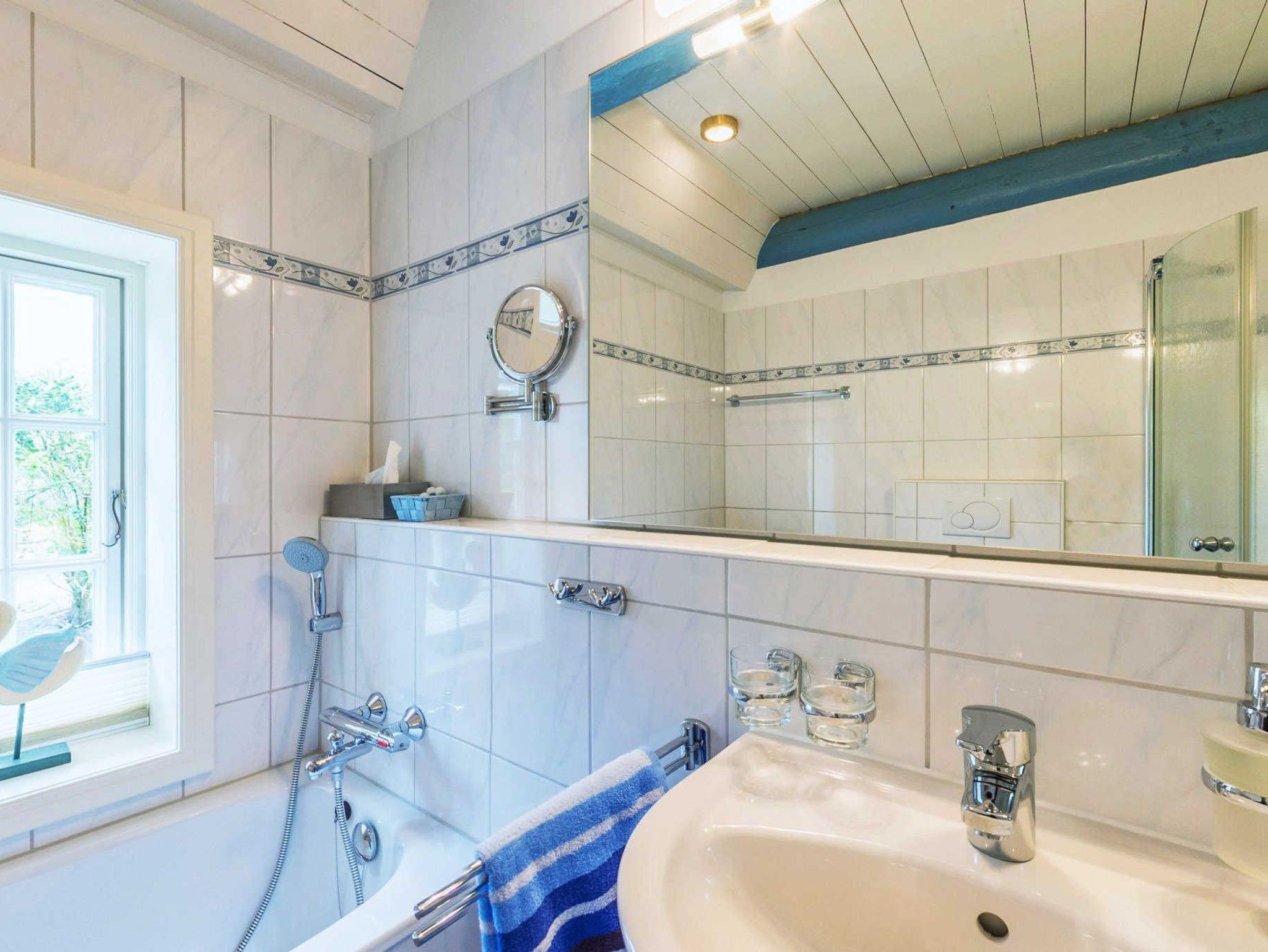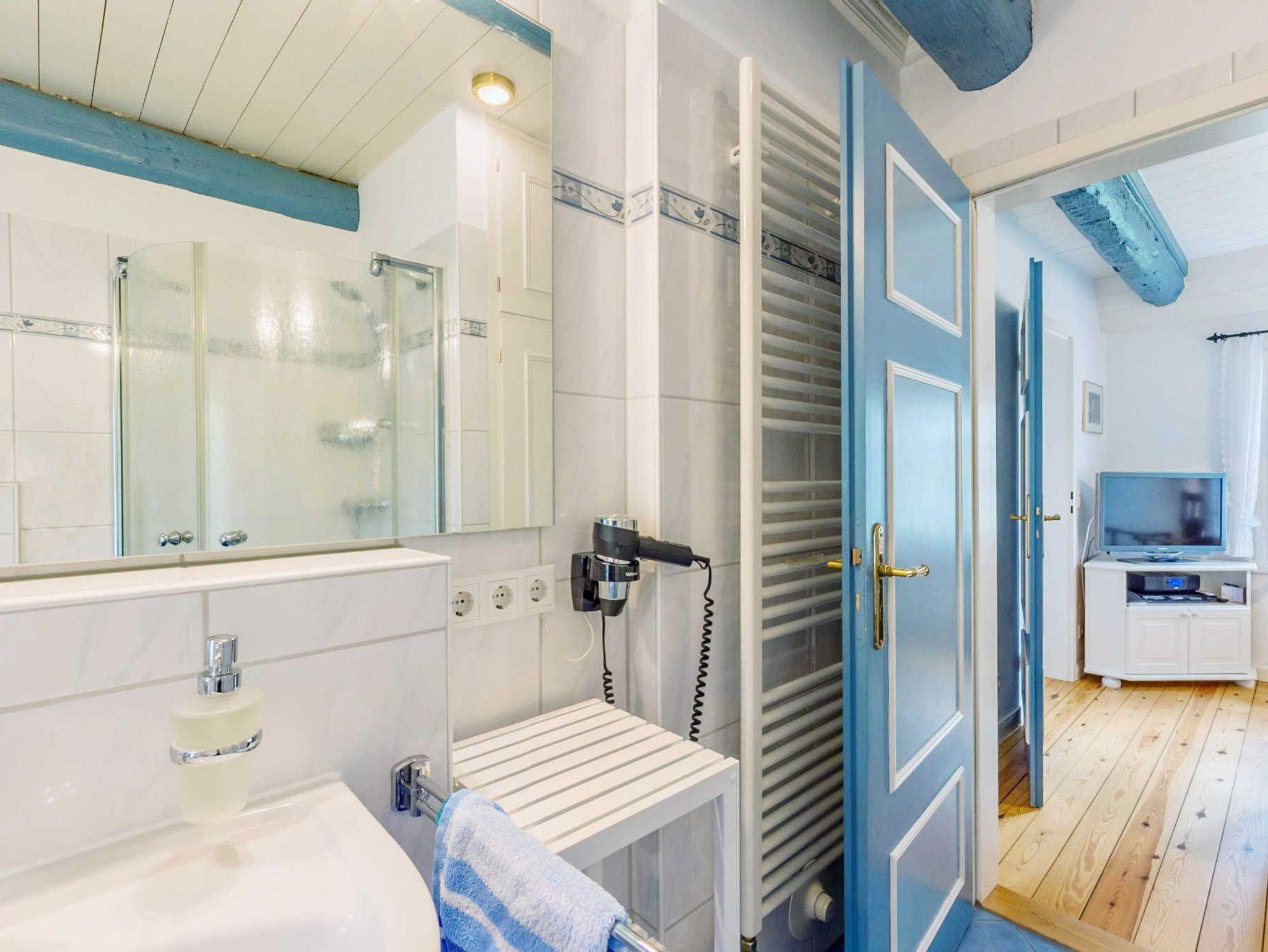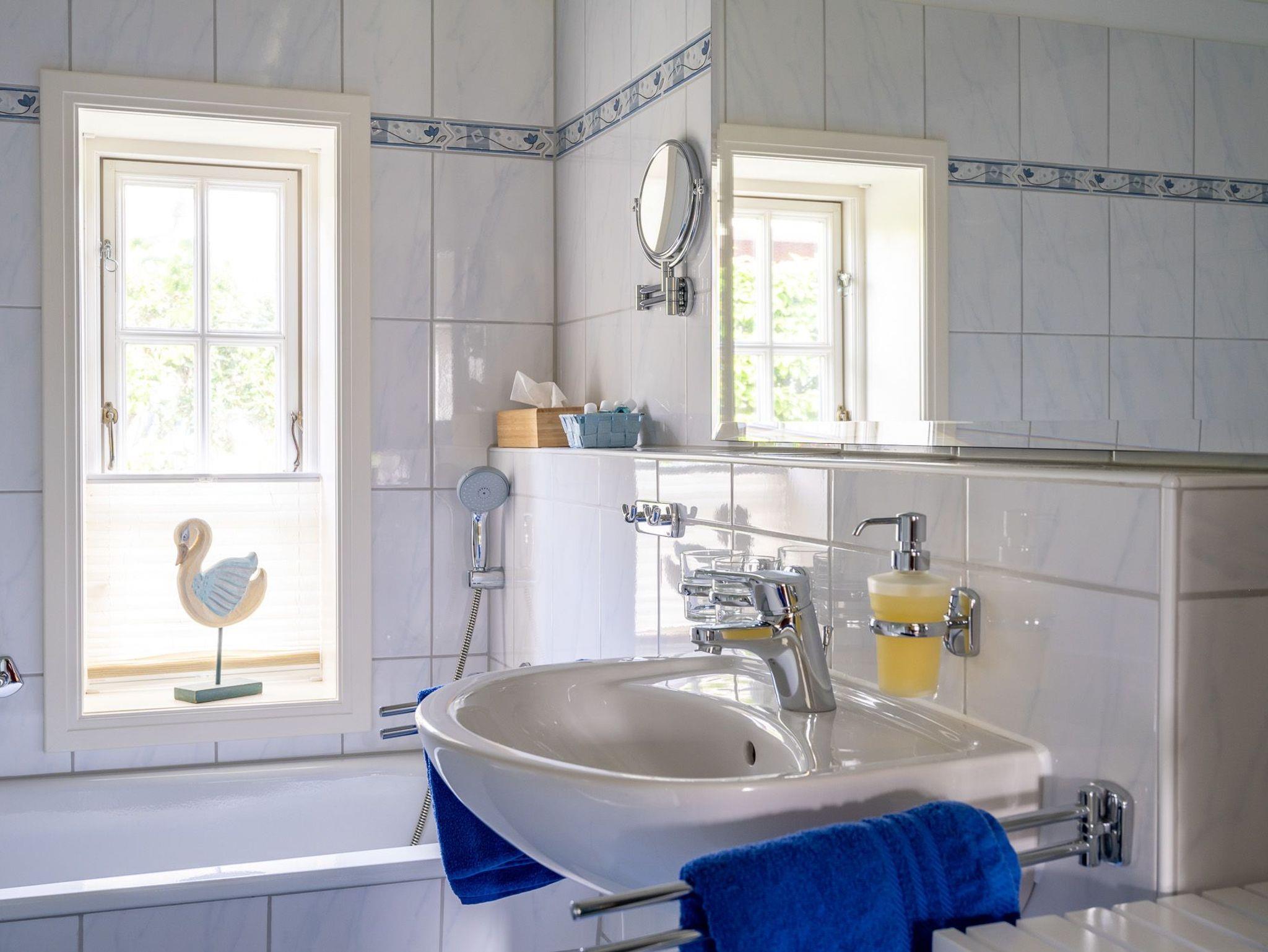 In dieser hellen und freundlichen Marschsuite fühlen Sie sich sofort zu Hause. Neues Mobilar und ein komfortables Dusch-und Wannenbad wurde dem friesischen Karakter des Hauses angepasst. Genießen Sie den Blick über die weite grüne Marsch und die RUHE!
