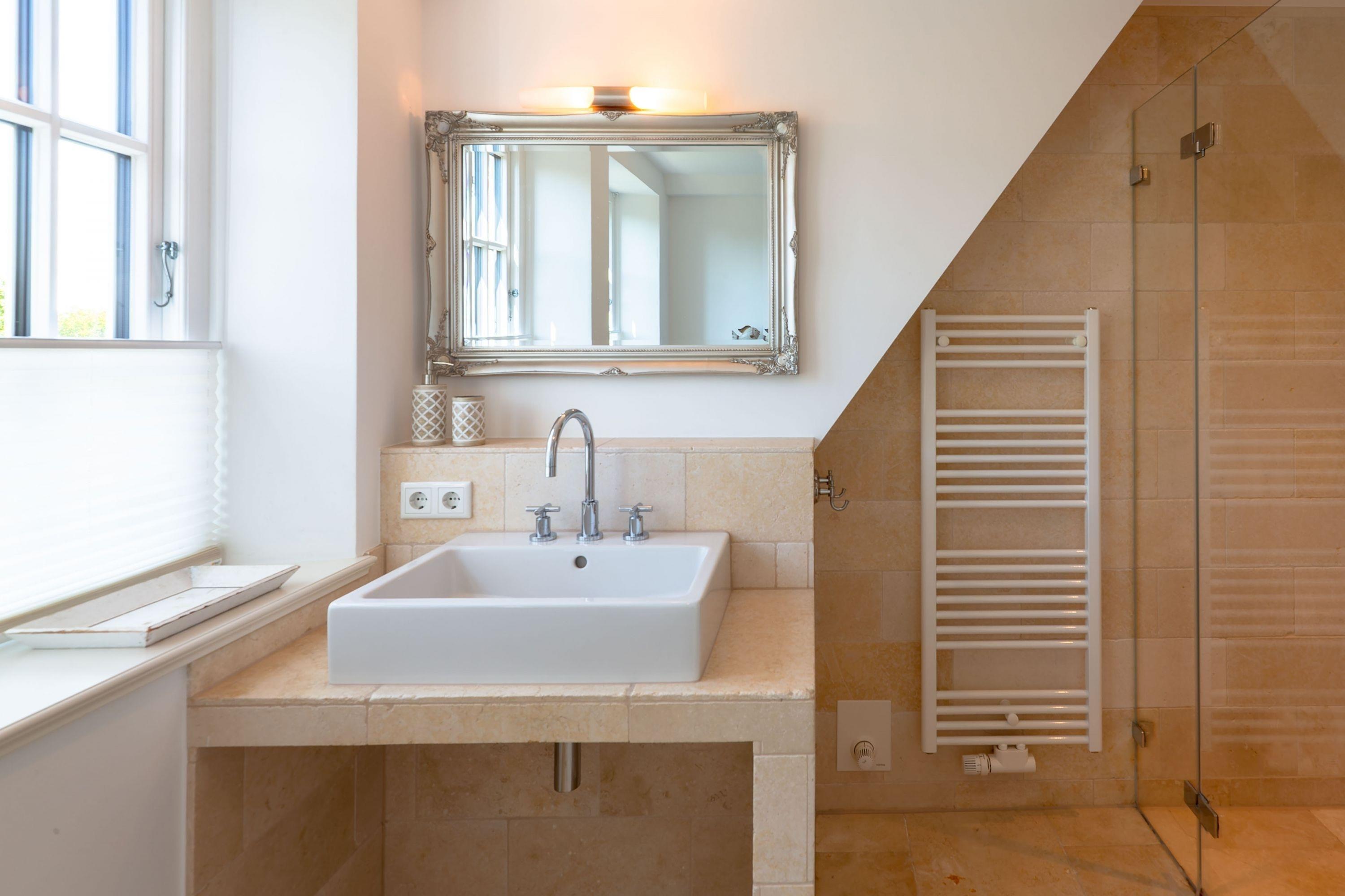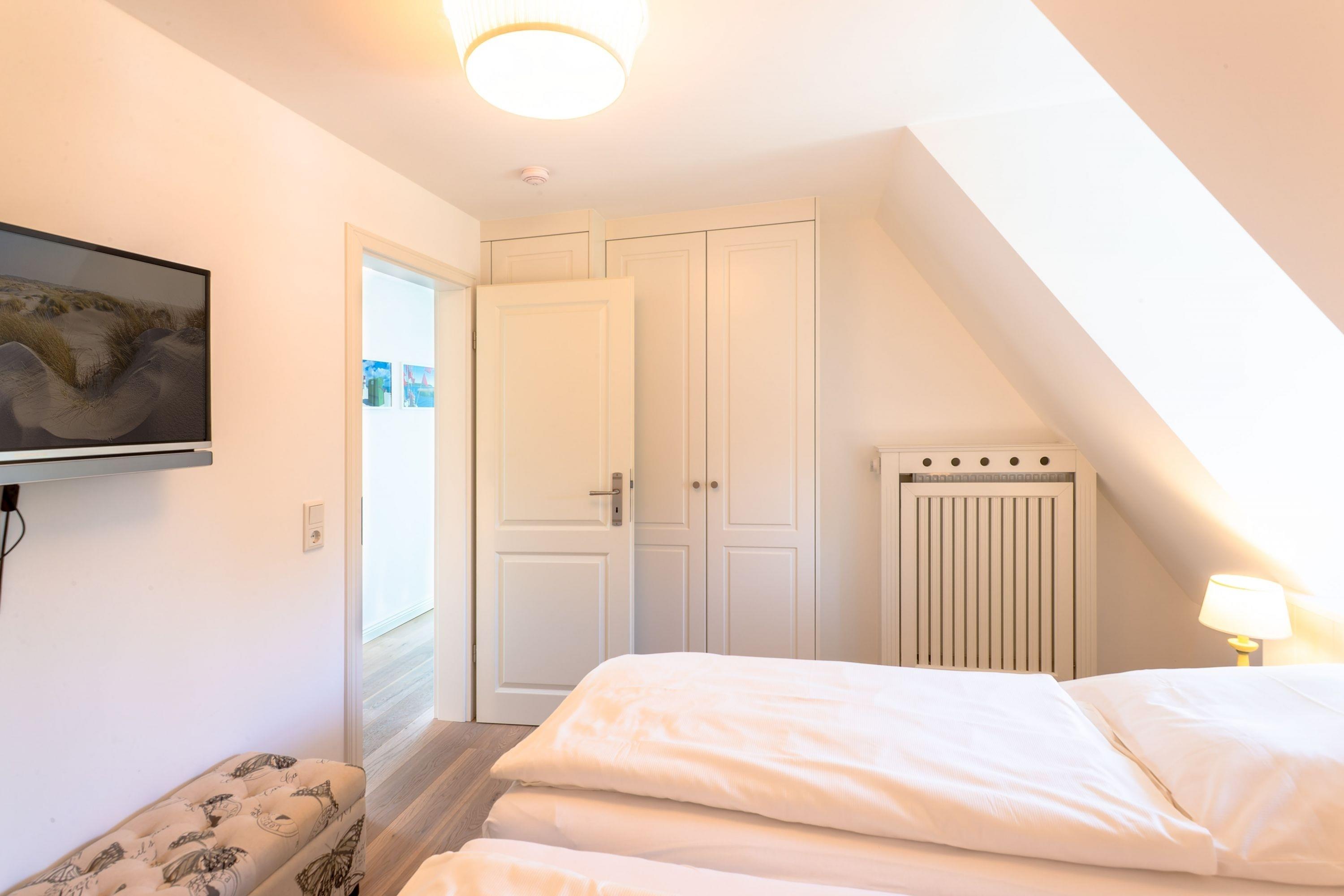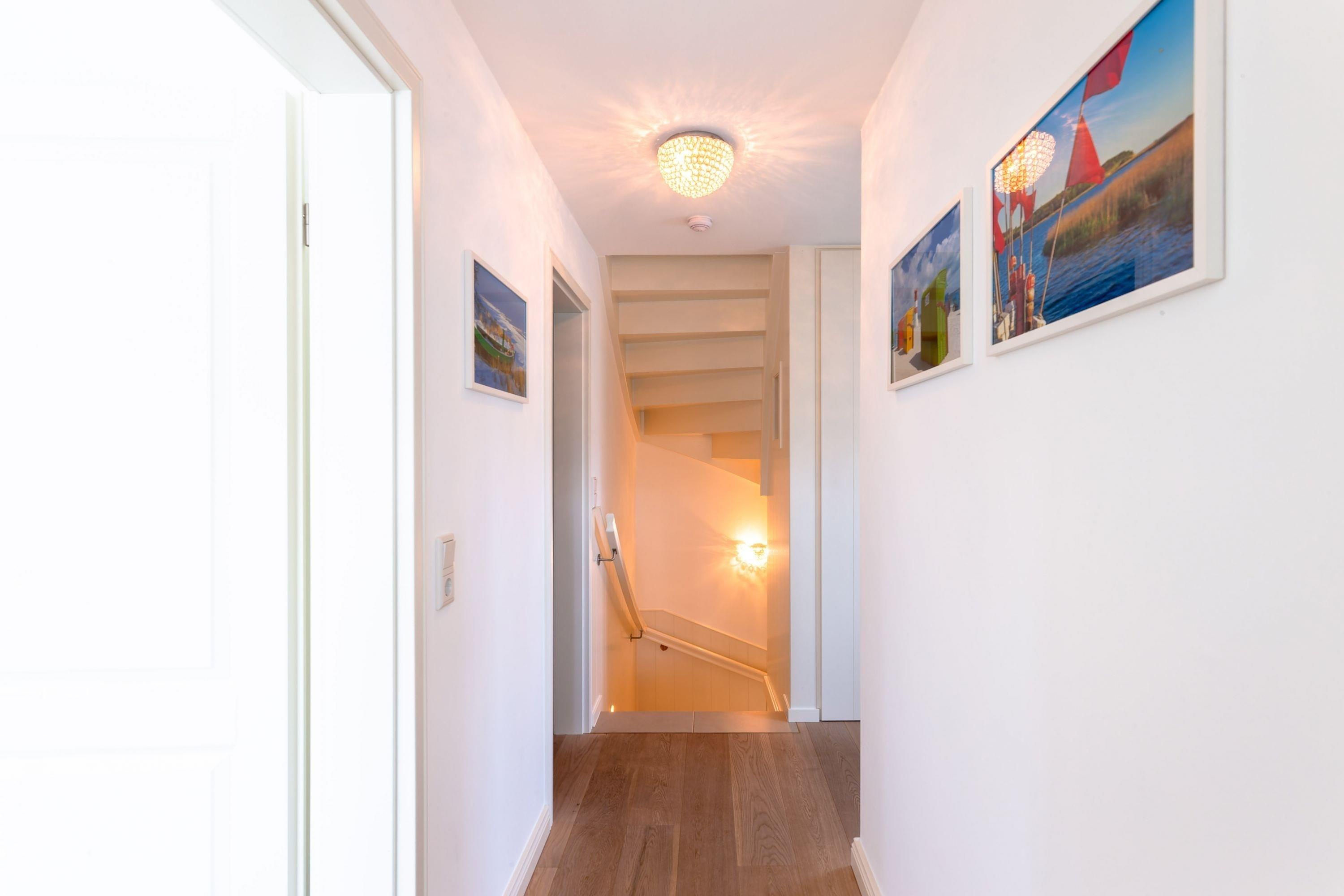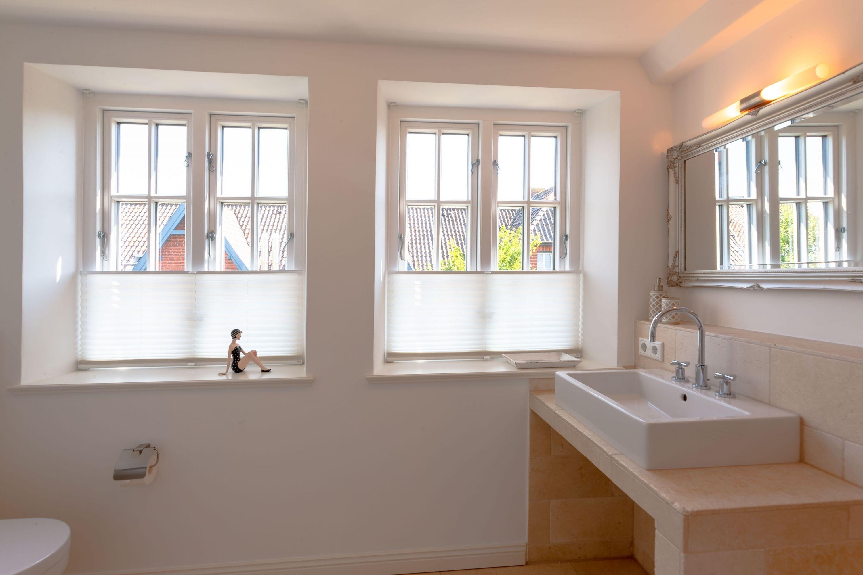 Ein typisches Friesenhaus mit sehr schöner Architektur. Die Summe schöner Details wie Holzsprossenfenster, Reetdach, Fliesen und Holzarbeiten - schafft eine wunderbare Atmosphäre. Das Doppelhaus unter Reet liegt an der Marsch, eingebettet in Wrixum - dem kleinen Nachbarort von Wyk mit dörflichem Charme. In der Nachbarschaft befindet sich ein Café mit leckerem, selbstgebackenem Kuchen, ein Fahrradverleih um die Insel per Rad zu erkunden und die Backstube des ortsansässigen Bäckers. Die Stadt Wyk mit seinen Geschäften und der Promenade sowie vom Strand nur etwa 5 - 10 Fahrradminuten entfernt.