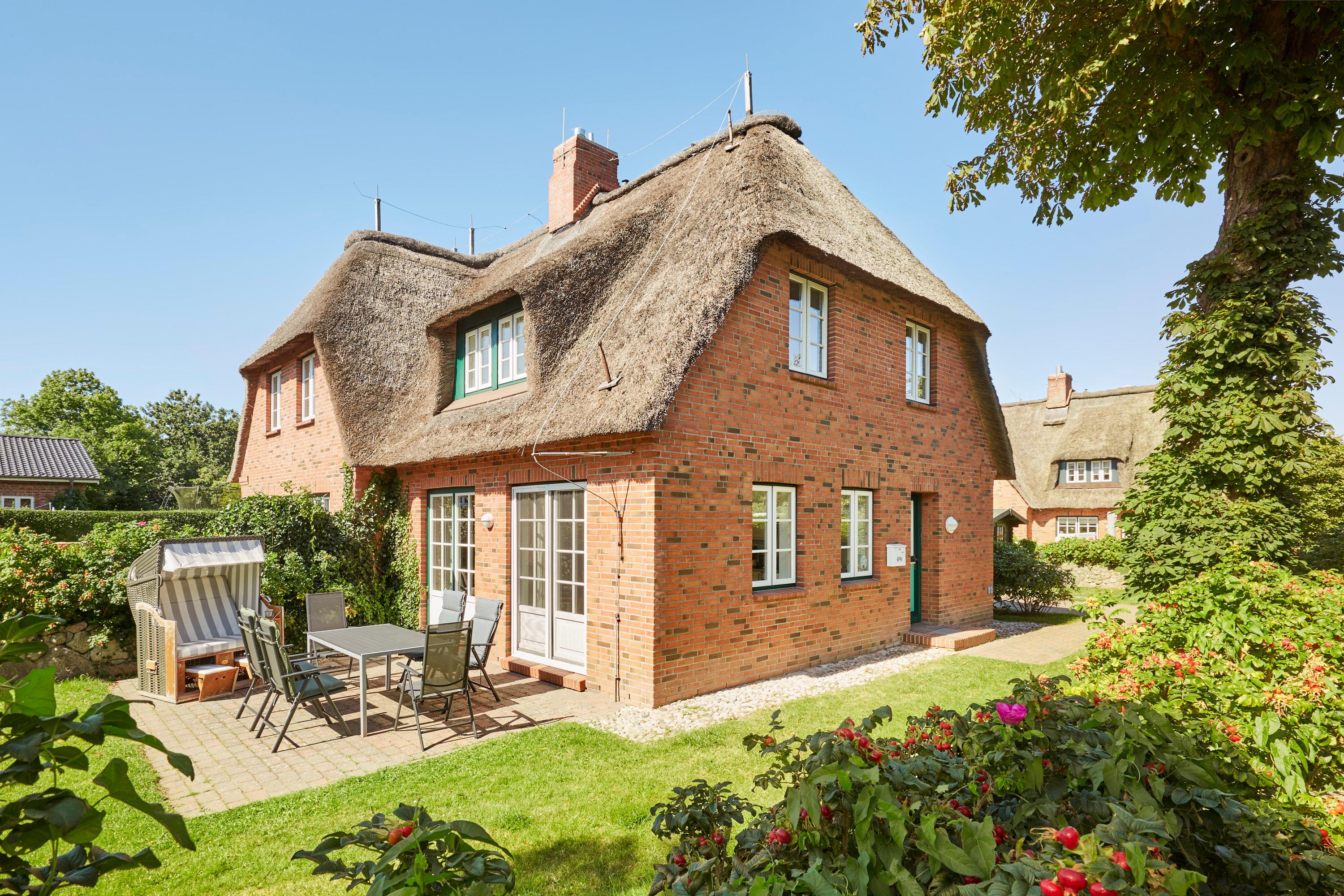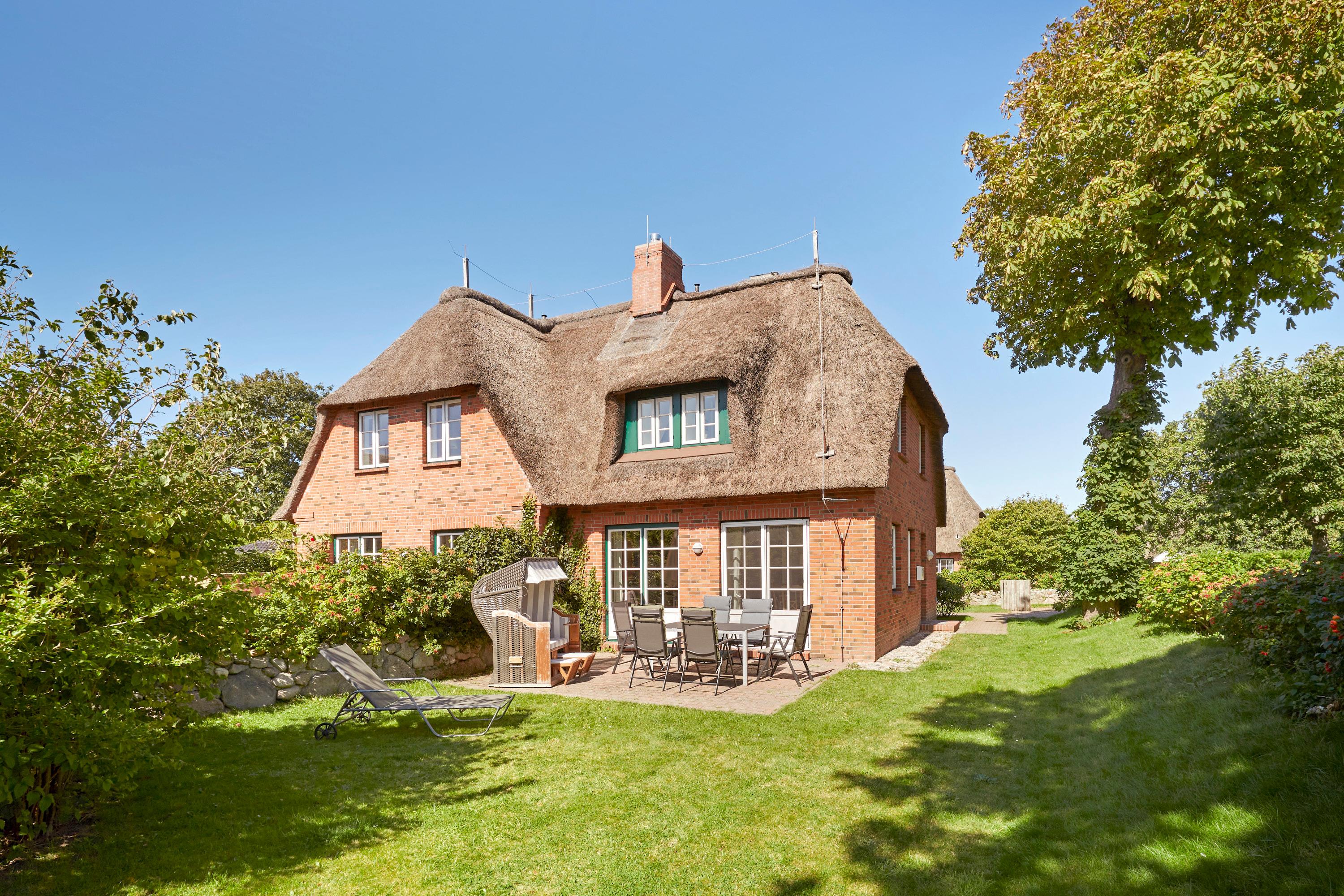 Das Doppelhaus unter Reet liegt direkt an der Marsch, eingebettet in Wrixum - dem kleinen Nachbarort von Wyk mit dörflichem Charme. Hier haben Sie auch im Hochsommer einen Platz der Abgeschiedenheit und Ruhe und sind trotzdem vom Innenstadtbereich der Stadt Wyk mit seinen Geschäften und der Promenade sowie vom Strand nur etwa 5 - 10 Fahrradminuten entfernt. Genießen Sie den Komfort des Hauses und die schöne Einrichtung. Es ist an alles gedacht - Sie werden sich wohlfühlen.