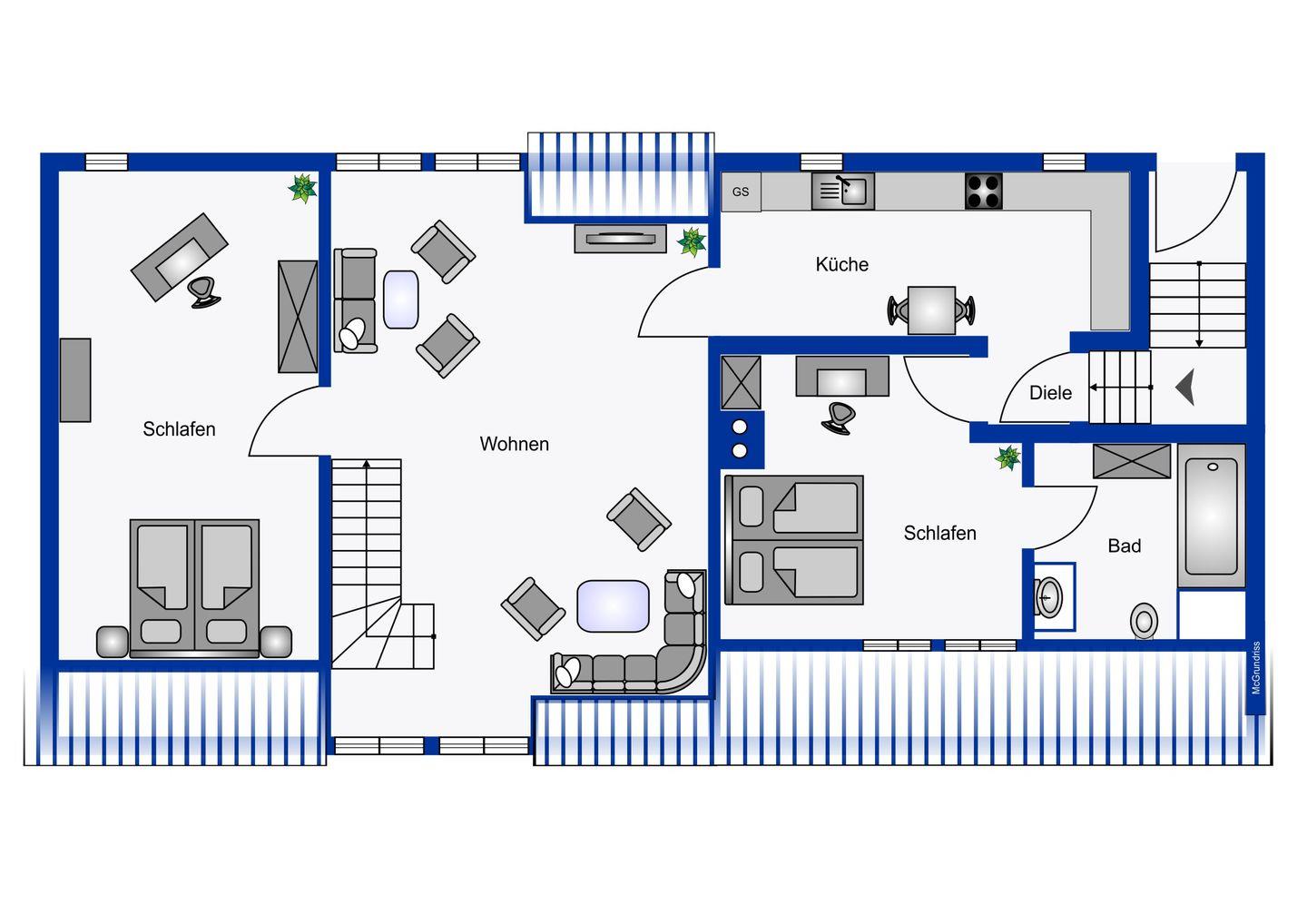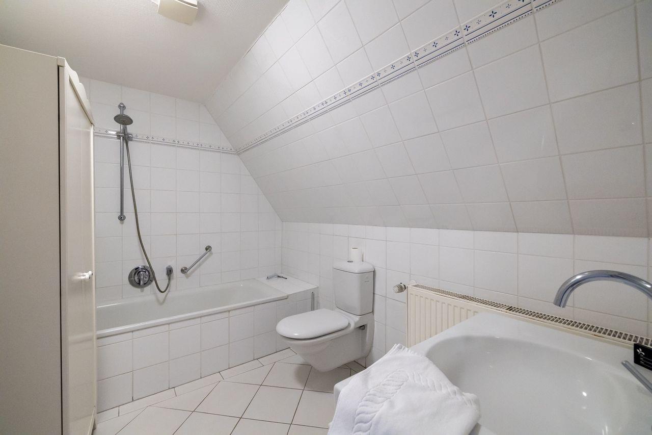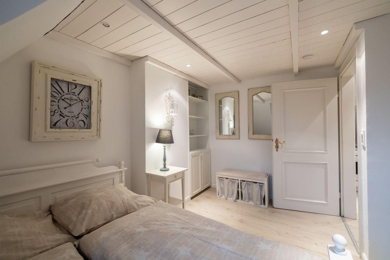 Die 80qm große Ferienwohnung in der 1. Etage verfügt außerdem über 2 Schlafzimmer (140cm breites Bett und 160cm breites Bett), ein bad en-suite, ein separates Gäste-WC und eine Küche. Im Wohnbereich finden Sie ein 3D Smart TV und eine Stereoanlage mit Smartphonedocking vor. Abgerundet wird diese schöne Ferienwohnung mit einem Gartengrundstück, das sich gegenüber dem Eingang findet und nur für Sie zur Verfügung steht. Selbstverständlich mit Terrassenmöbeln. Auf dem Gemeinschaftsgrundstück finden Sie außerdem eine Liegewiese, einen kleinen Kinderspielplatz, Fahrradständer sowie einen zur Wohnung gehördenden Parkplatz vor.