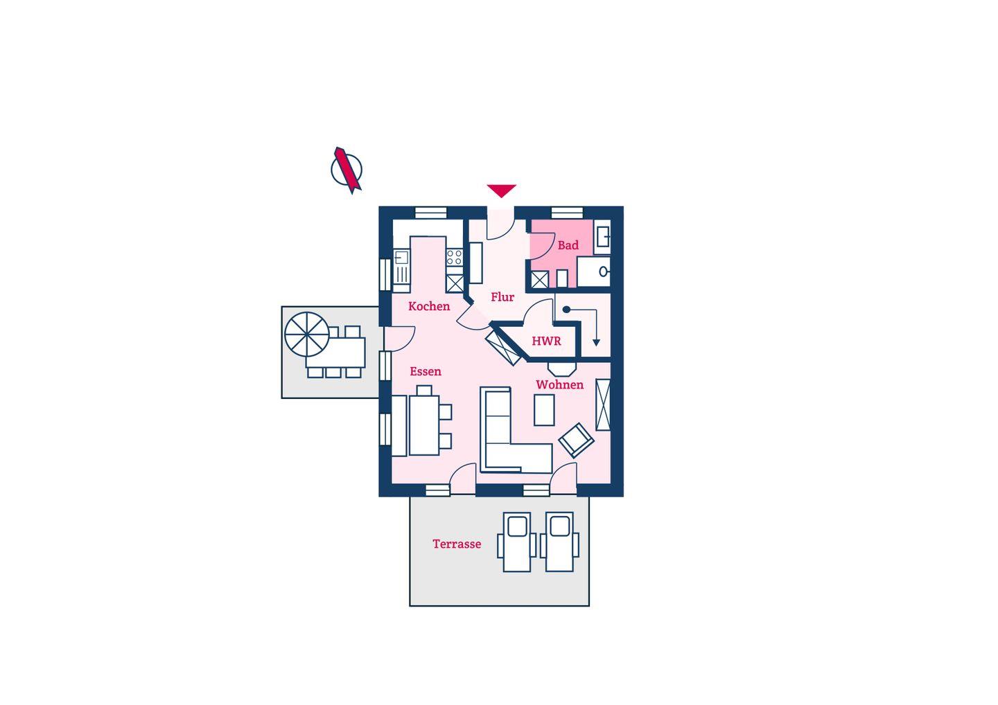 Im Erdgeschoss befinden sich der großzügige Wohn- und Essbereich mit offener Küche sowie ein Bad mit bodengleicher Dusche. Über den Essbereich gelangen Sie direkt auf die eigenen Terrassen und in den Garten. Der Original Mylin-Kachelofen sorgt auch an kühleren Tagen für eine wohlige Atmosphäre. Im Badezimmer stehen Ihnen eine Waschmaschine und ein Trockner zur Verfügung - selbstverständlich kostenlos!