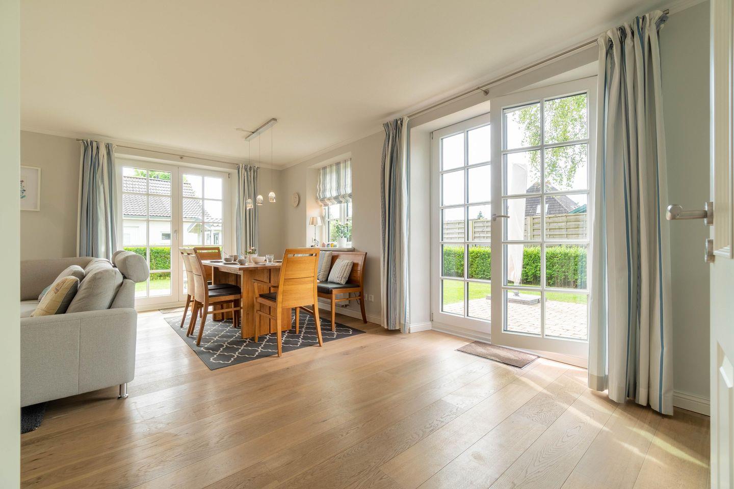 Die reetgedeckte Doppelhaushälfte Haus Sterntaucher verfügt über 3 Schlafzimmer und 2 Bäder und bietet somit komfortabel Platz für bis zu 6 Personen zuzüglich einer Kleinkinderaufbettung.