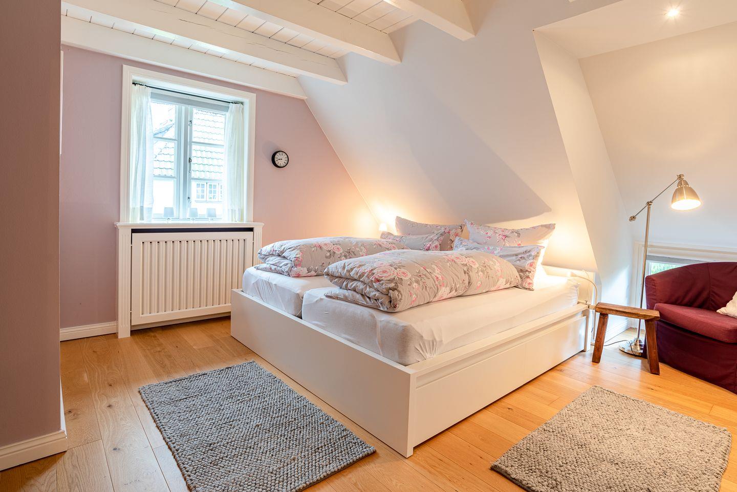 Die Ferienwohnung Fleederbeerstuv im Haus Föhrstuben verfügt über 3 Schlafzimmer und 2 Bäder und bietet somit komfortabel Platz für bis zu 4 Personen zuzüglich einer Kleinkinderaufbettung. Auch bis zu 2 Hunde sind herzlich willkommen.