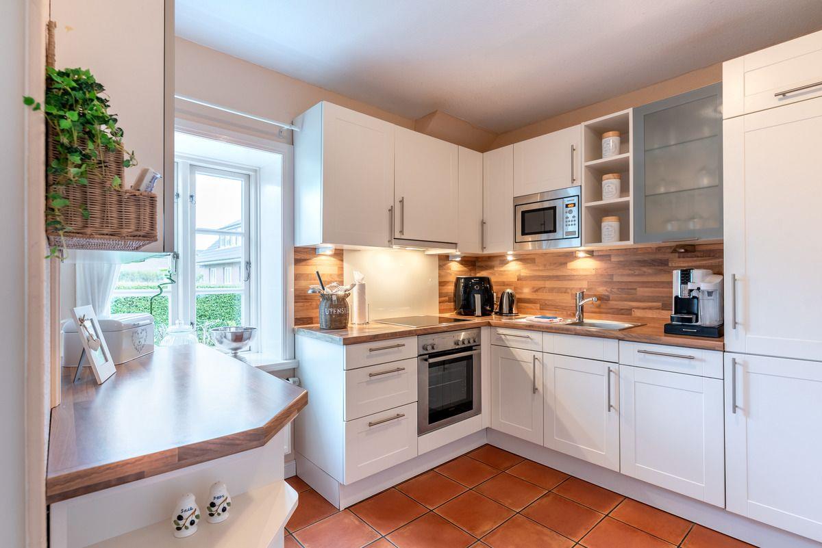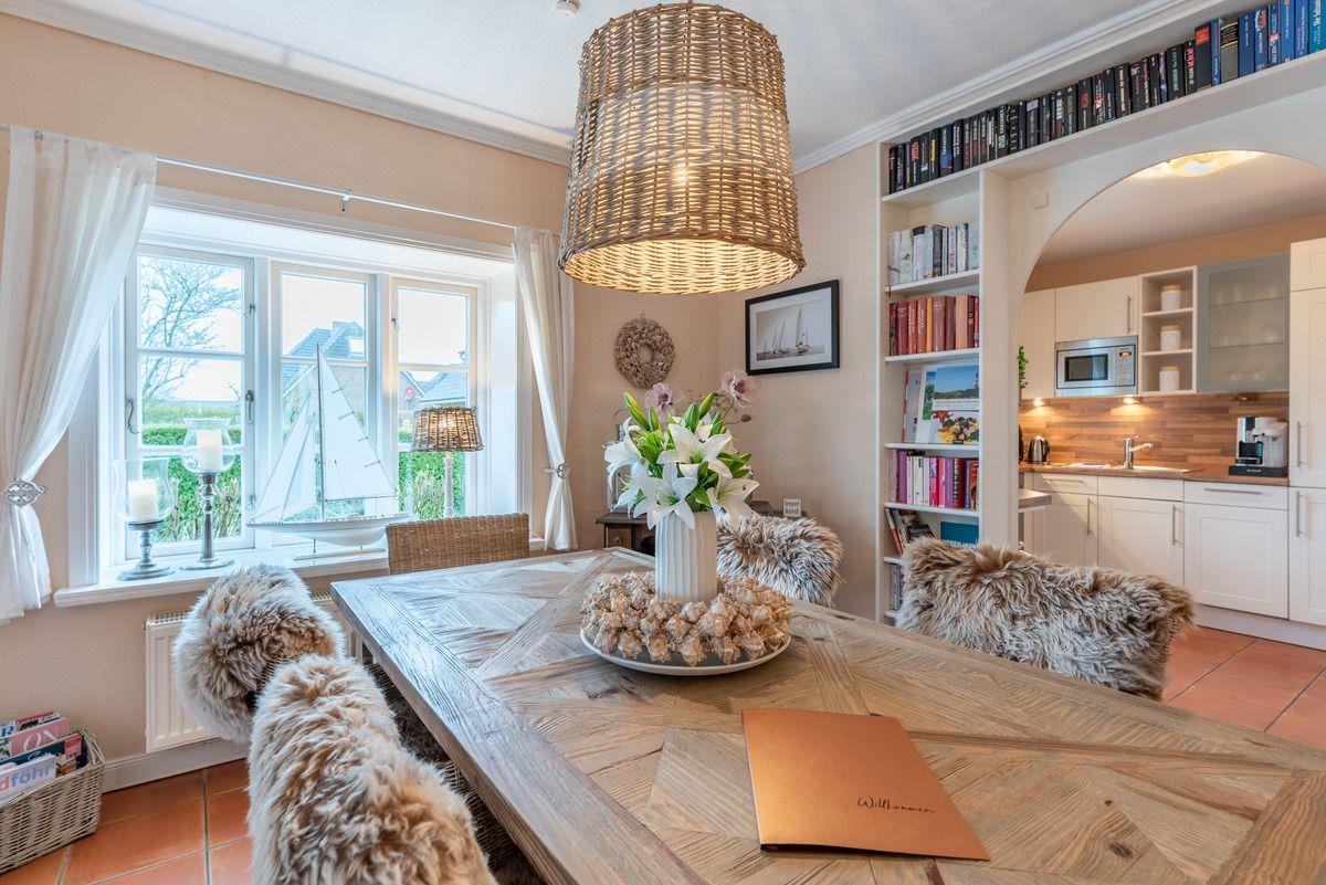 Genießen Sie einen exklusiven Urlaub unter Reet, der zahlreiche kostenlose Annehmlichkeiten bietet, darunter: eine voll ausgestattete Küche, einen Strandkorb direkt am Objekt und einem Strandkorb am Hundestrand in Wyk.