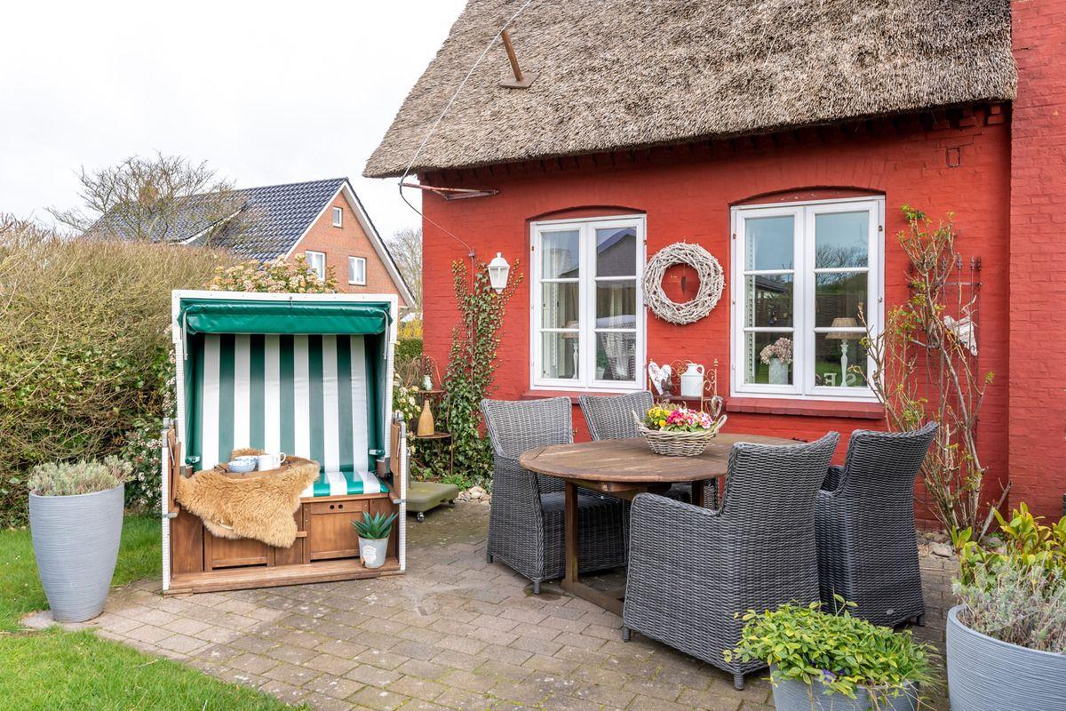Exklusives und historisches Reetdachhaus mit umzäuntem Garten und Terrasse mit Strandkorb.