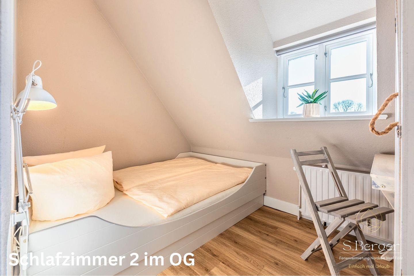 Im kleinem Schlafzimmer befindet sich ein 160 breites Bett.