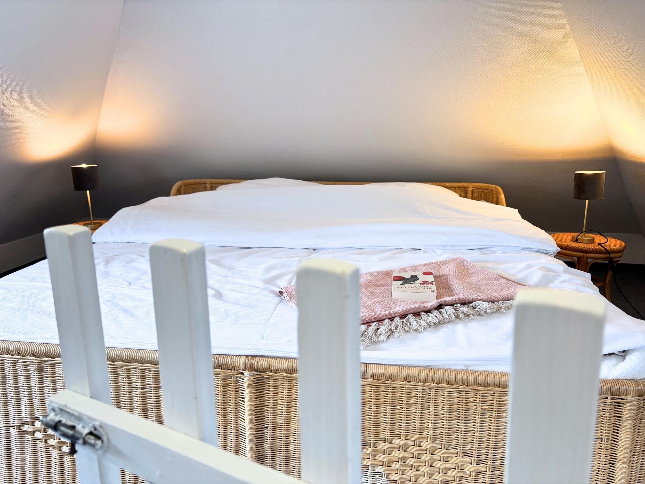Willkommen bei Frederik Brückenblick. Diese Ferienwohnung bietet Platz für bis zu 6 Personen. Sie befindet sich im linken Obergeschoss des Hauses am Teich, hat zwei Schlafbereiche und ein großes Bad mit Dusche. Einer der Schlafbereiche ist über eine weitere Treppe erreichbar. Von der Wohnküche aus geht es auf den gemütlichen Westbalkon. Im Winter/Frühjahr ist die Fehmarnsundbrücke aus dem Dachgeschoss zu bewundern.