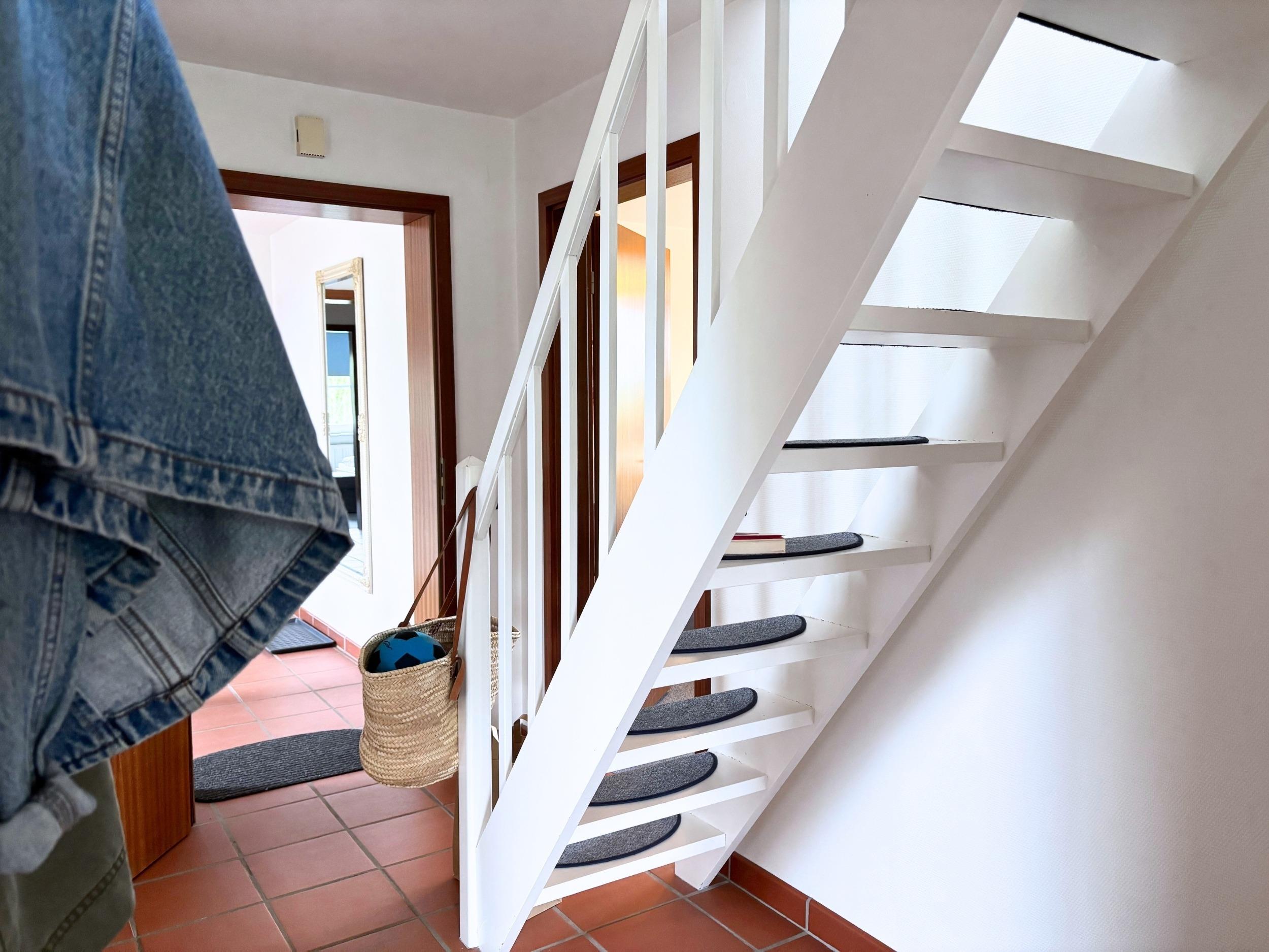 Karl Sonnenstrahl befindet sich im rechten Obergeschoss des Hauses am Teich. Die schöne Ferienwohnung mit Balkon ist für vier Personen ausgestattet und hat zwei Schlafzimmer - einer davon ist über eine weitere Treppe erreichbar. Der Balkon geht von der Wohnküche ab und ist gen Westen gerichtet. Hier können Sie die Abendsonne einfangen.