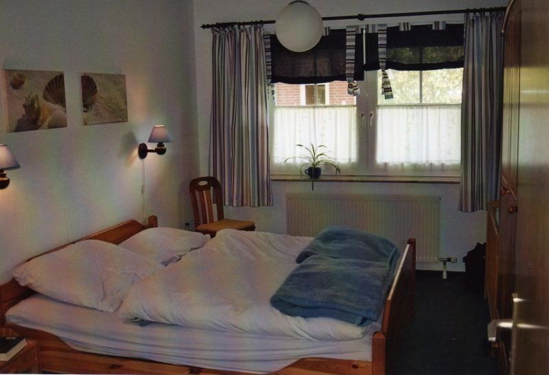 Die Schlafzimmer sind aufgeteilt als Kinderschlafraum mit zwei Einzelbetten sowie als Elternschlafzimmer mit Ehe- und Babybett. Bettwäsche und Handtücher werden nicht gestellt, sondern vom Mieter mitgebracht.