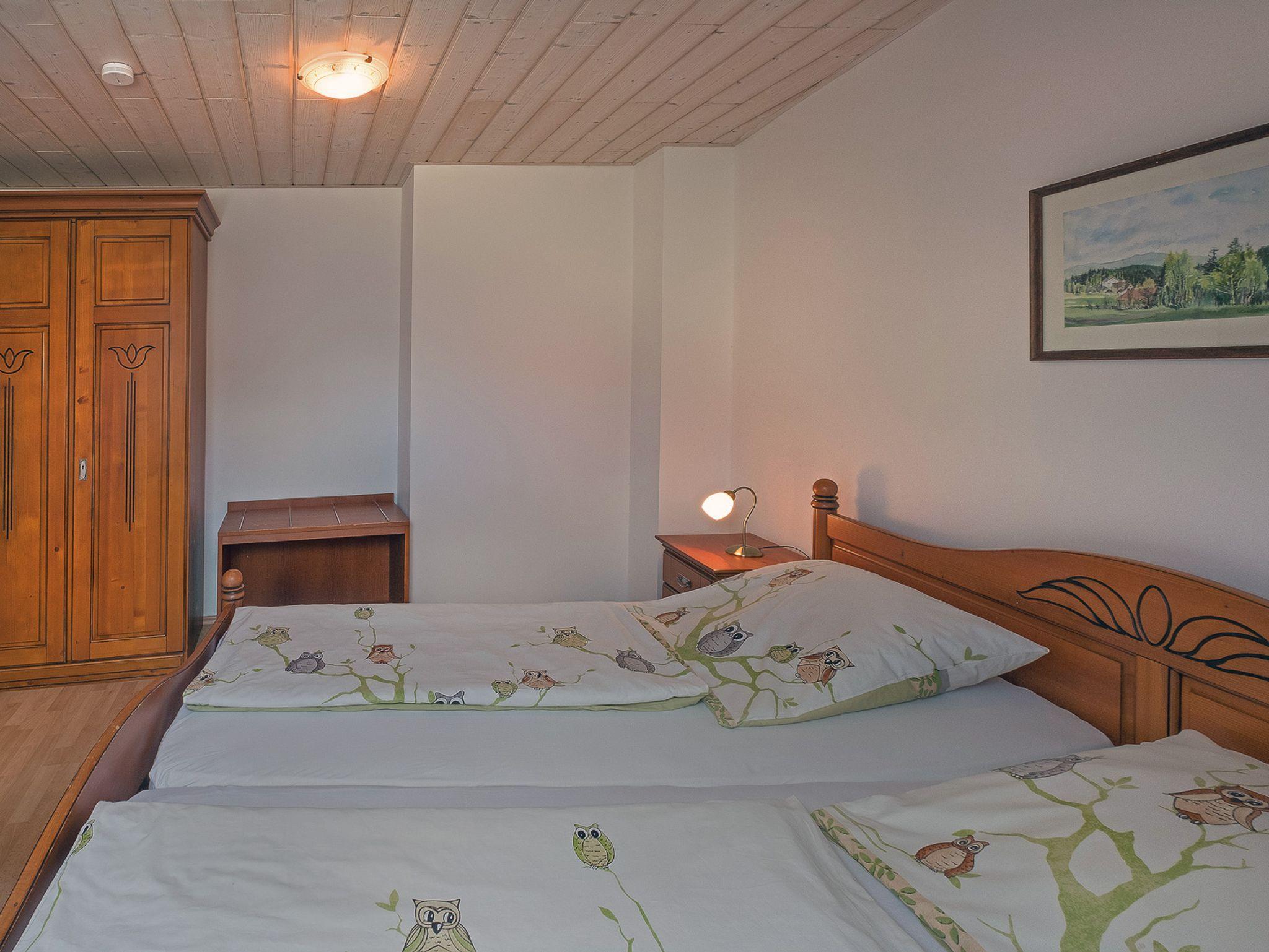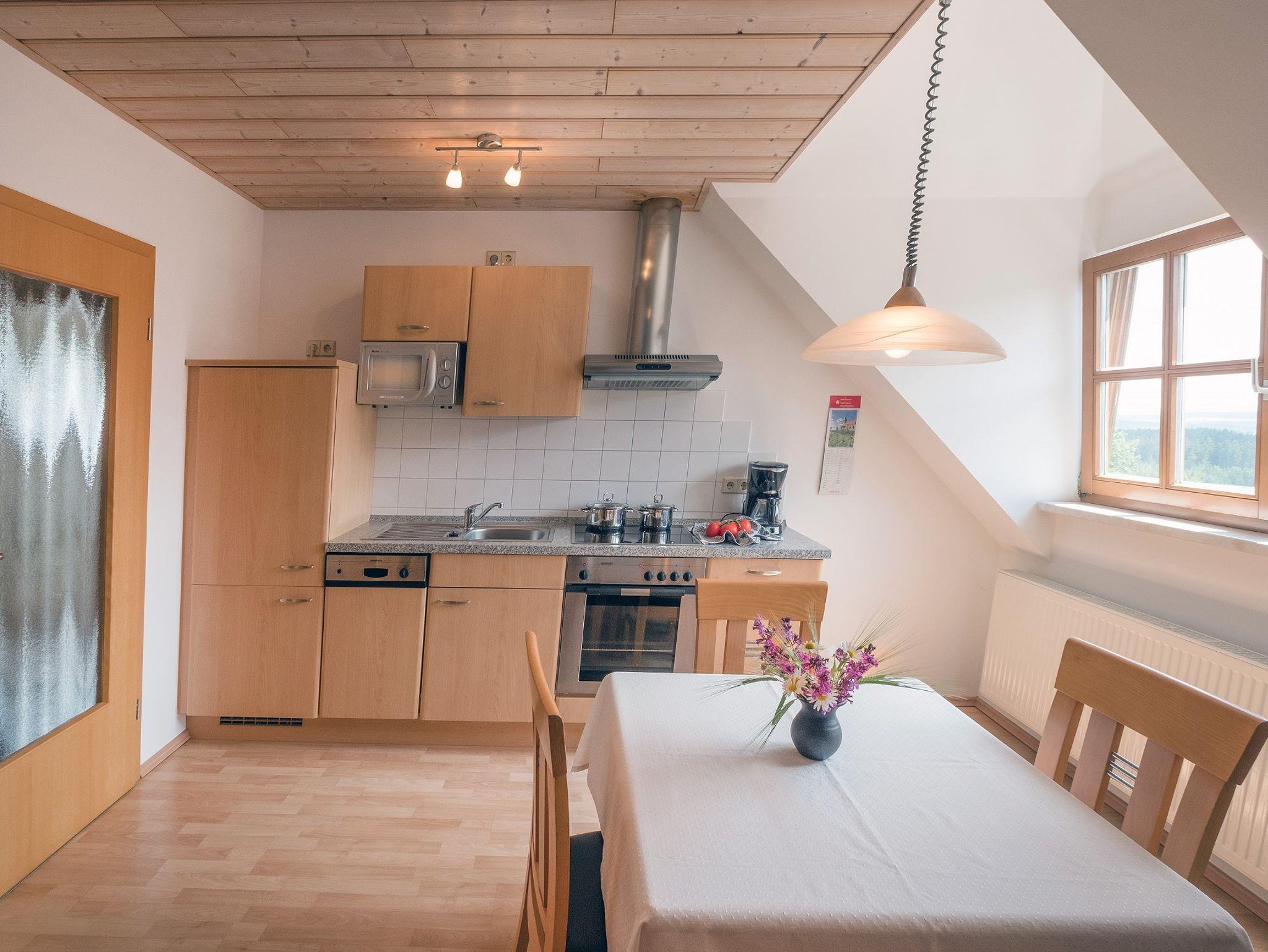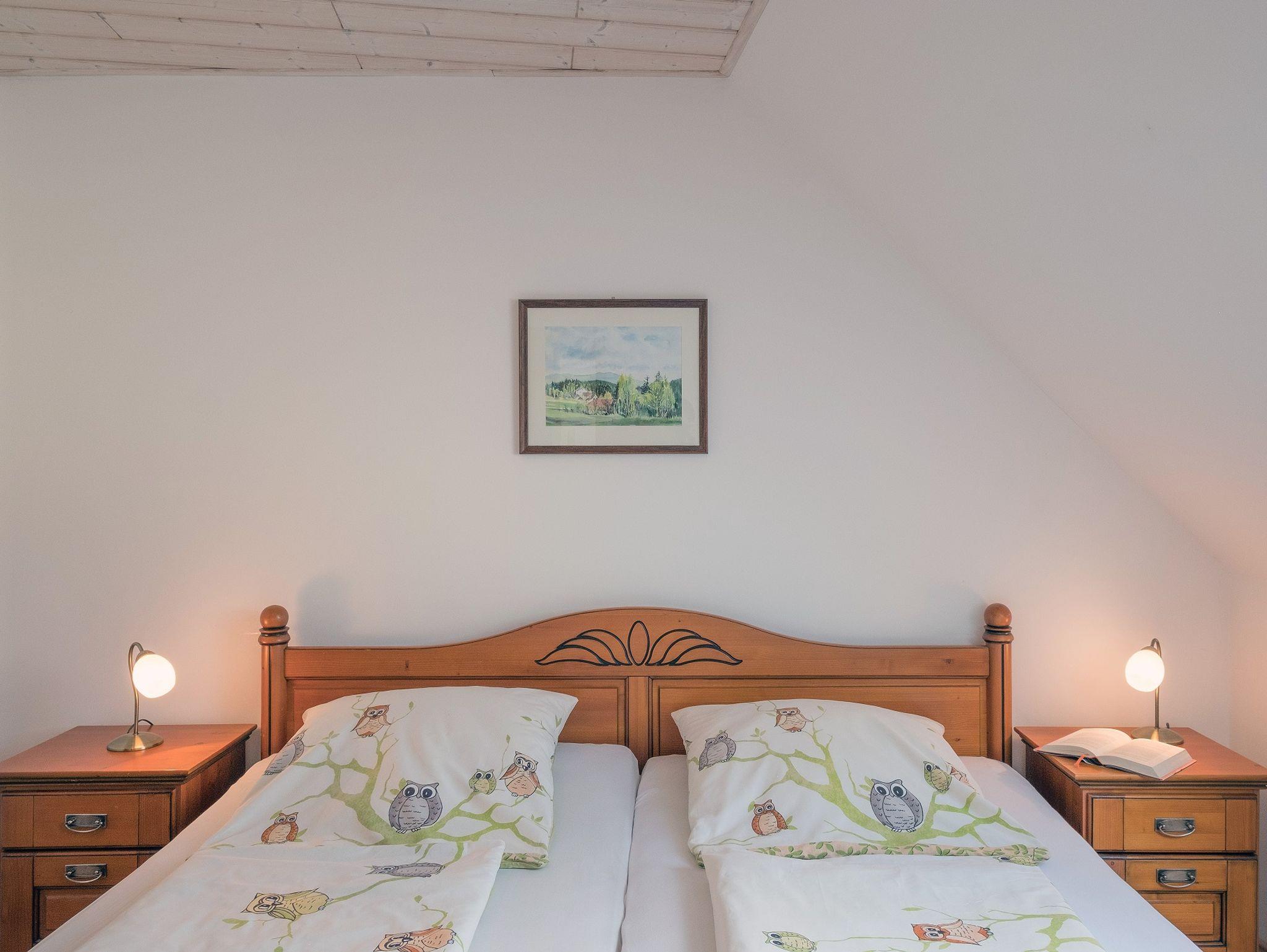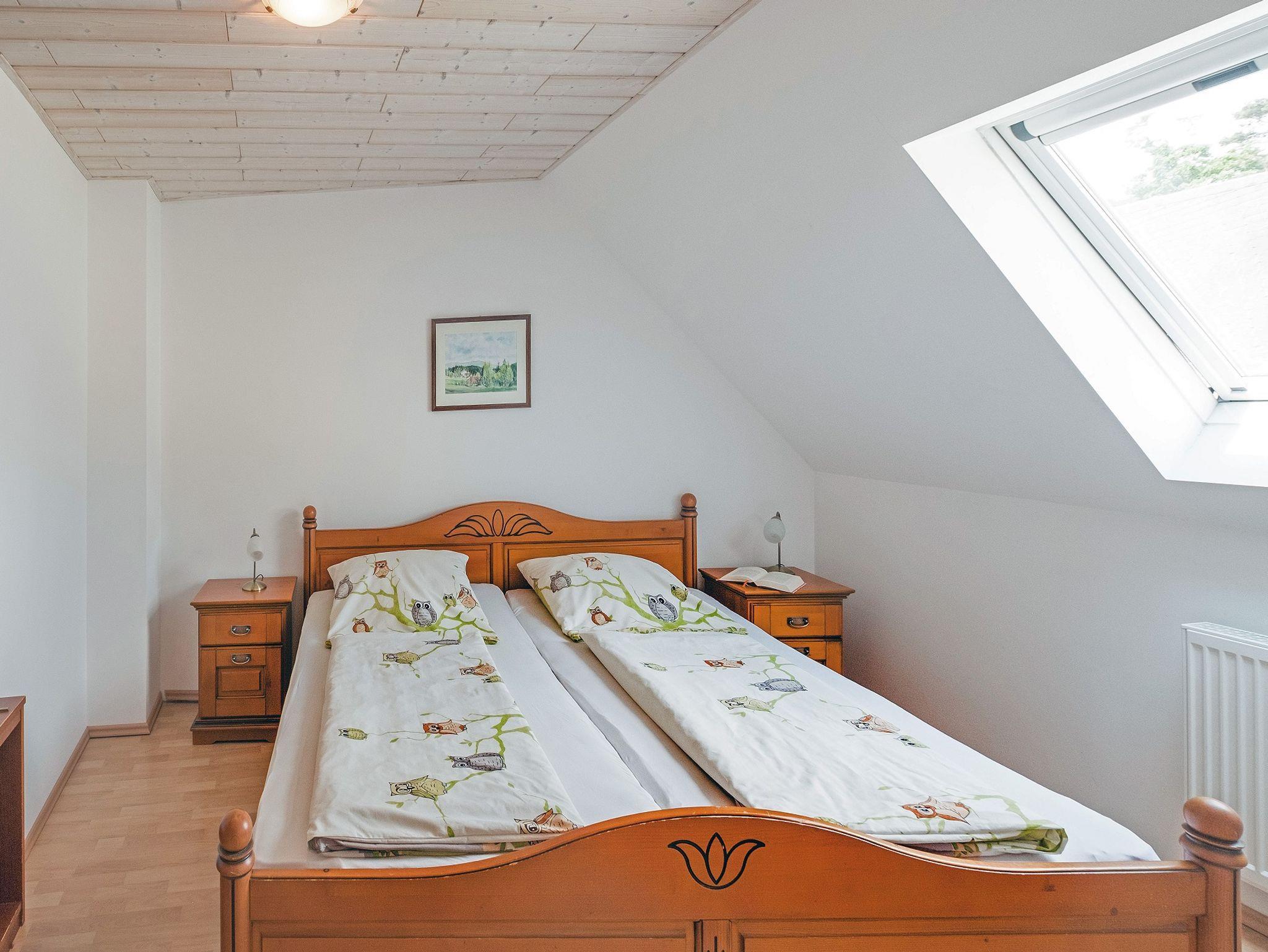 Unsere gemütliche Ferienwohnung 5 liegt im Dachgeschoss. Ein ganz besonderes Extra wartet hier auf die Kinder: Sie haben ihren eigenen Schlafbereich und ihr eigenes WC eine Etage höher, direkt unter dem Dach. Im großzügigen Wohnbereich verläuft die Treppe in das Domizil der Kinder nach oben. Die Küche ist komplett ausgestattet (z.B. Mikrowelle, Geschirrspüler, Wasserkocher, Ceran-Kochfeld). Im weiteren Schlafzimmer ist viel Platz, so dass wir auch bequem ein Kinderbettchen für die Kleinsten unterbringen. Das Bad mit Dusche und WC ist gleich daneben. Auf WLAN müssen sie auch hier nicht verzichten.