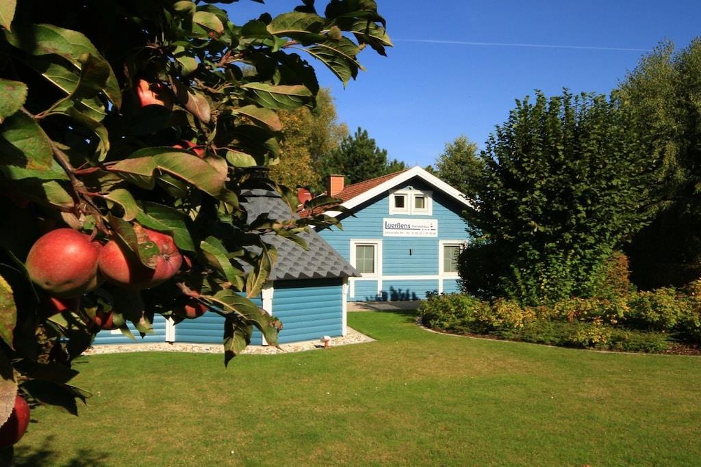 Dieses wunderschöne ca. 85 qm große Ferienhaus mit Grillkota und Sauna wurde direkt aus Schweden importiert. Das Ferienhaus ist fast ebenerdig angelegt und verfügt über zwei abgeschlossene Schlafzimmer, einen großzügigen offenen Wohnbereich und ist komplett ausgestattet. Neben einer Küche mit Kühlschrank, Herd, Backofen und Geschirrspülmaschine stehen Ihnen Sateliten-TV, Fahrräder, Grill und Gartenmöbel zur Verfügung. Selbstverständlich finden Sie die Betten bezogen vor. Handtücher und Geschirrhandtücher sind ebenfalls vorhanden. Der obere Galeriebereich ist hervorragend zum Lesen, Entspannen und / oder als Spielparadies für unsere kleinen Gäste geeignet. Ein Parkplatz befindet sich direkt am Haus.