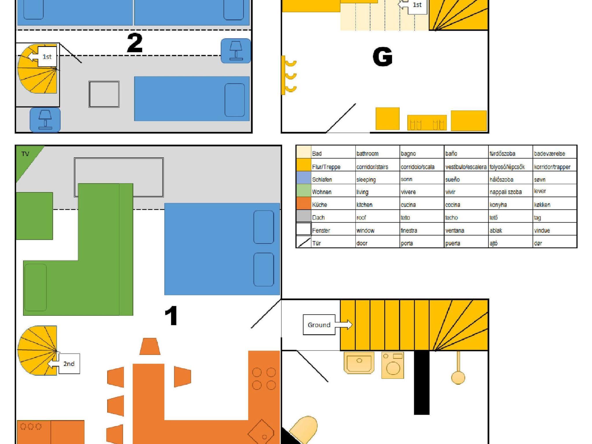 The apartment was fully refurbished in 2013 and provided with high-quality furniture. It measures 50m². You can park a pram in the hallway on the raised ground floor. The living room is on the first floor. The kitchen is equipped with an oven, ceramic hob, fridge with freezer compartment, microwave, kettle, toaster, coffee machine and dishwasher. A new LED TV with a satellite receiver, a DVD player, a stereo system, free Wi-FU and a radio alarm are provided. The spacious bathroom has a barrier-free shower.