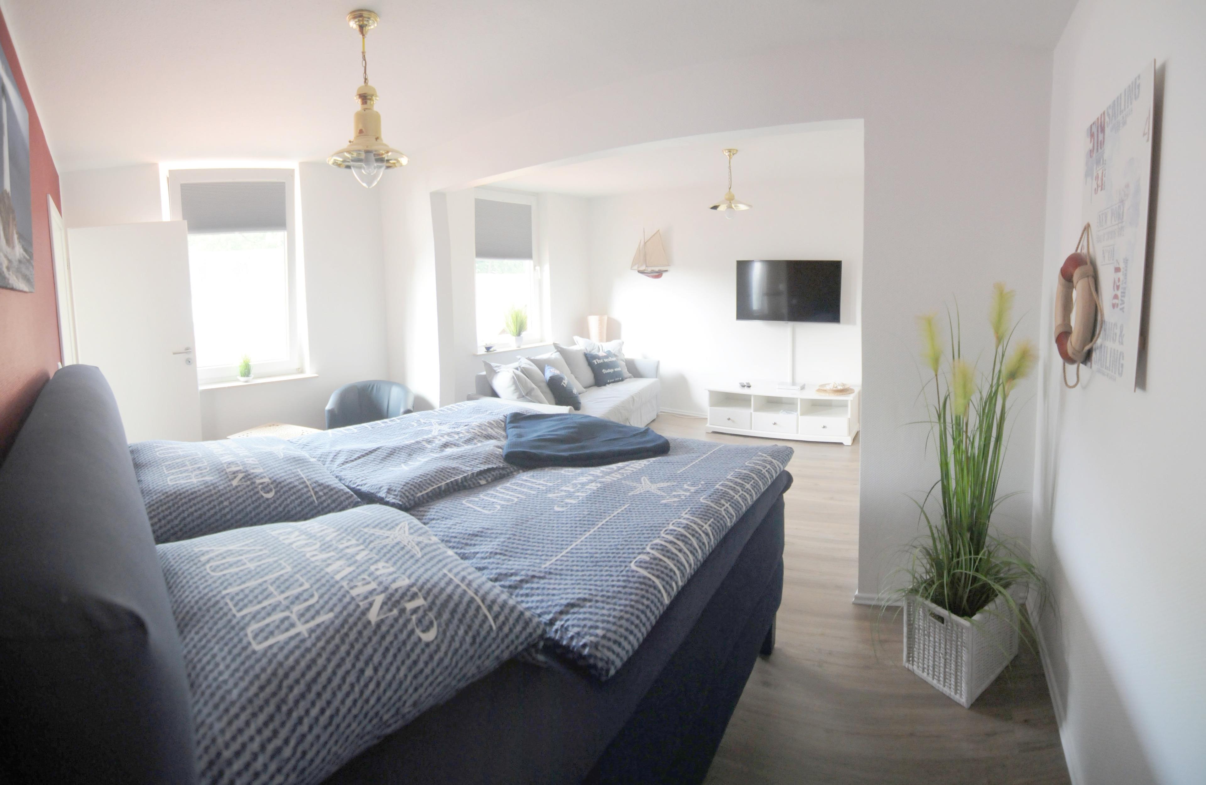 Die Größe der Ferienwohnung 2 umfasst 135 m² und sie liegt im 1. OG. direkt im Ortskern von Steinhude (An der Friedenseiche 12). Die Entfernung zum Steinhuder Meer beträgt 270 m.