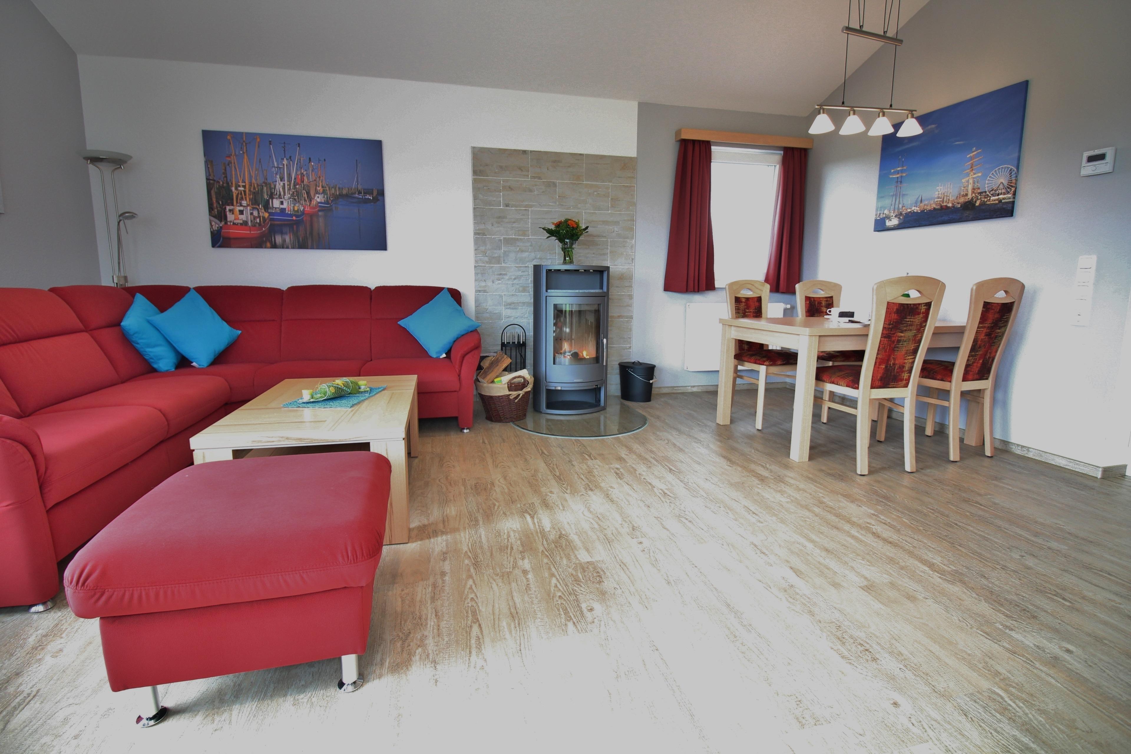 Unser geschmackvoll eingerichtetes Ferienhaus befindet sich in einem gepflegten Ferienpark auf einem ca. 330 qm großen Grundstück. Es ist liebevoll eingerichtet und lädt zum Wohlfühlen ein. Die Fertigstellung des Hauses war im Juli 2016. Alle Möbel sind modern, neu und farblich aufeinander abgestimmt. Bequeme Polstermöbel und Matratzen, ein großer Esstisch, Deckenfluter ein großer 49-Zoll Flachbildschirm inklusive Sky sowie kostenloses Internet laden zum Entspannen ein. Das Ferienhaus ist barrierefrei und somit auch für Personen mit Gehbehinderung geeignet (nicht rollstuhlgerecht). Und sollten die Kinder beim Wattausflug mal dreckig werden - kein Problem eine Waschmaschine steht zu Ihrer Verfügung bereit. Sollte das Wetter mal nicht so gut sein, so können Sie gemeinsam mit ihren Kindern spannende Spiele auf unserer Wii genießen. Falls die Kinder mal alleine raus wollen, so finden sie direkt in der Nähe einen schönen kleinen Spielplatz. Der Hundespielplatz befindet sich nur ca. 600 Meter vom Haus entfernt. Zum Hundestrand sind es dann nur noch ungefähr 500 Meter weiter. Und falls es mal kalt oder stürmisch wird, machen Sie einfach unseren schönen Kamin an, und genießen Sie die wohlige Wärme und Gemütlichkeit.
