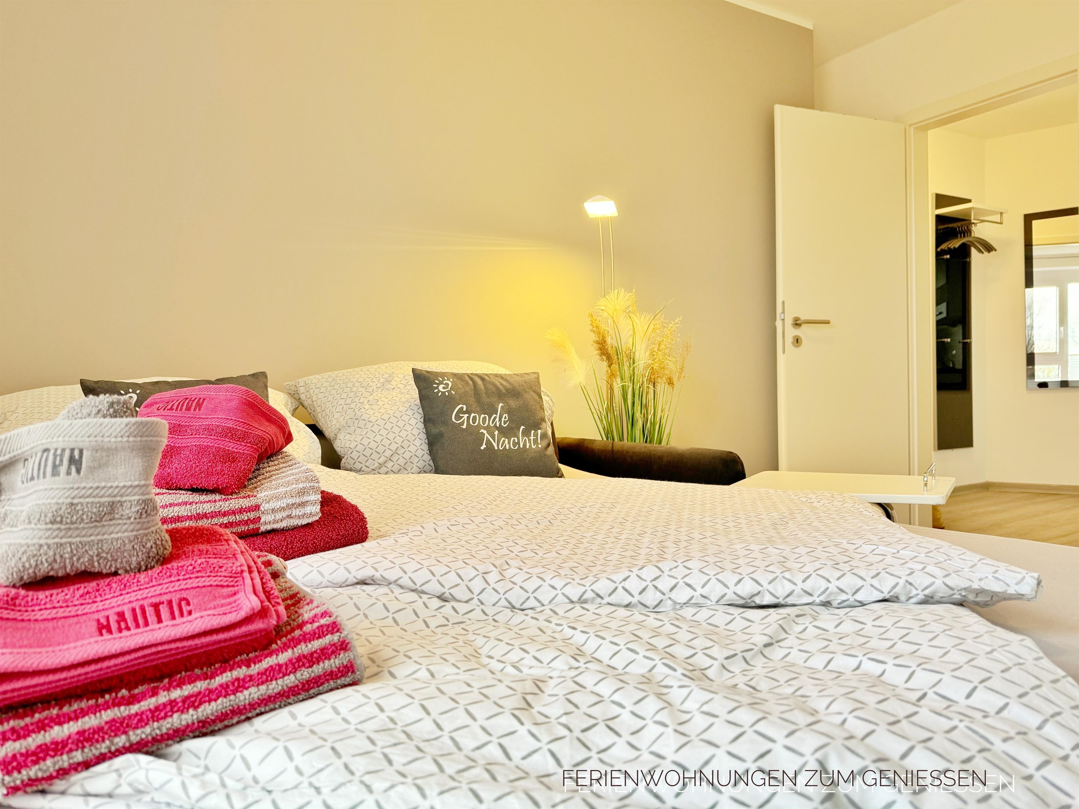 Ein hochwertiges Wäschepaket mit frischer bezogener Bettwäsche und ausreichend Handtücher inkl. Badvorleger kann auf Wunsch zusätzlich gebucht werden.