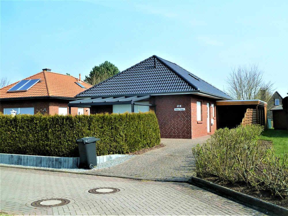 Ferienhaus in ruhiger Lage in Dorum-Neufeld an der Wasserlöse für 3 Personen mit Carport und überdachter Terrasse.