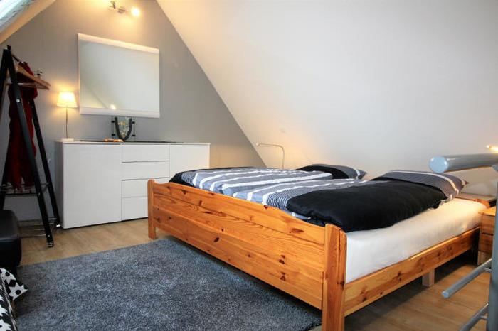 Vom Wohnzimmer aus gelangen Sie über eine Treppe in das Schlafstudio (Maissonette-Wohnung). Ein Doppelbett mit 2 mal 2 Meter und ein Einzelbett mit 200 mal 90 cm. Kinderhochstuhl und Kinderreisebett stehen kostenlos zur Verfügung.