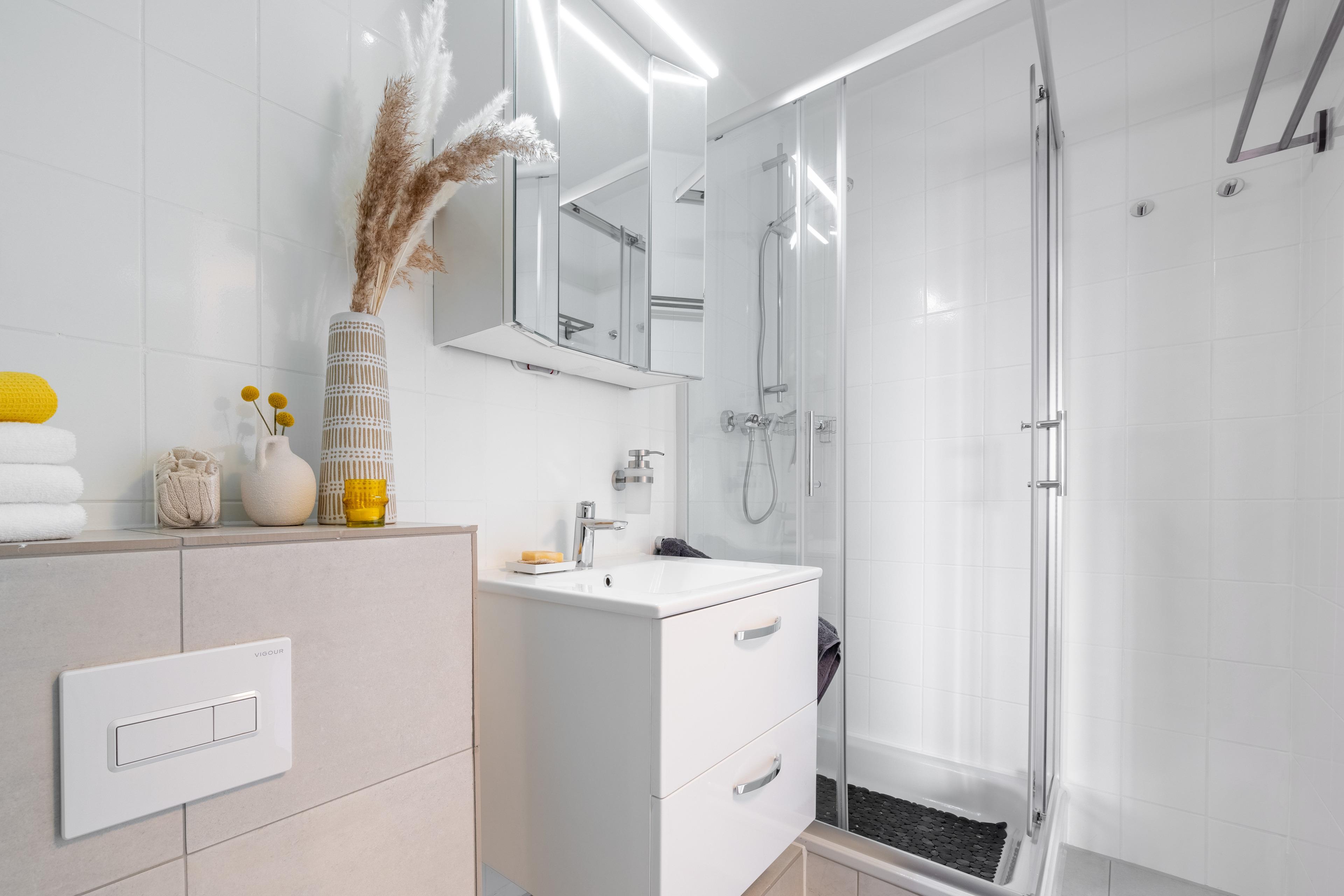 Rechts über dem Flur gelangen Sie in das moderne Duschbad mit Waschtisch, Toilette und Aufbewahrungsmöglichkeiten. Gerade aus über dem Flur treten Sie ein in den offenen Wohn-, und Koch- und Essbereich . Die gut ausgestattete Küche lädt zum entspannten Kochen ein. Der Essplatz befindet sich in der Loggia hell und freundlich mit Platz für 4 Personen. Der Wohnbereich ist mit einer gemütlichen Couch, die auch zum Schlafen für 2 Personen umgewandelt werden kann, ausgestattet. Ein kleiner Tisch sowie eine Kommode mit TV-Flachbildschirm rundet den Wohnbereich ab. Ihr Urlaubsbalkon mit Südausrichtung erwartet Sie mit einem Tisch und Sesseln für entspannte Momente an der frischen Luft und Blick ins Grüne. Das Schlafzimmer ist mit einem geschmackvollen Kleiderschrank vom Wohnbereich abgetrennt. Dort erwartet Sie ein komfortables Boxspringbett (1,60 m breit und 2,00 m lang). Ihr eigener Aussenstellplatz sorgt für entspanntes Ankommen. In herrlicher ruhiger Lage nur 200 m vom Nordseedeich entfernt erwartet Sie nach ca 15 min Fussmarsch hinter dem Deich die Nordsee. Bei Ebbe lädt die Nordsee zum Watt laufen ein und bei Flut natürlich zum Schauen wie Machtvoll das Wasser ist. Hier kann man seine Alltagssorgen vergessen. Für die Kinder gibt es auf dem Weg dorthin ein Spielplatz zum Toben und Spass haben. 4 km weiter links am Deich entlang erreichen Sie Dorum Neufeld mit Gastronomie, Kutterhafen, Watt'n Bad ( Wellenbad), Fasssaunen ab 15.9. bis 30.04. , Bars und Shopping in direkter Umgebung. Der Strand dort lädt Mensch und Hund (Hundestrand) ebenfalls zum Verweilen ein. Die Städte Cuxhaven und Bremerhaven sind schnell zu erreichen ca 20 km entfernt. Ein schöner Hundestrand befindet sich in Sahlenburg. Dort ist für die Kinder auch ein Kletterpark.