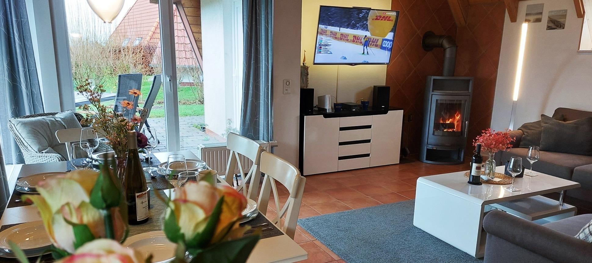 Haus Weitblick mit 3 Schlafzimmern und Blick in die Natur. Keine Haustiere erlaubt. Keine Monteure. Kamin. Komfortabel und mit viel Liebe eingerichtet. Insektenschutzgitter, 3 Fernseher