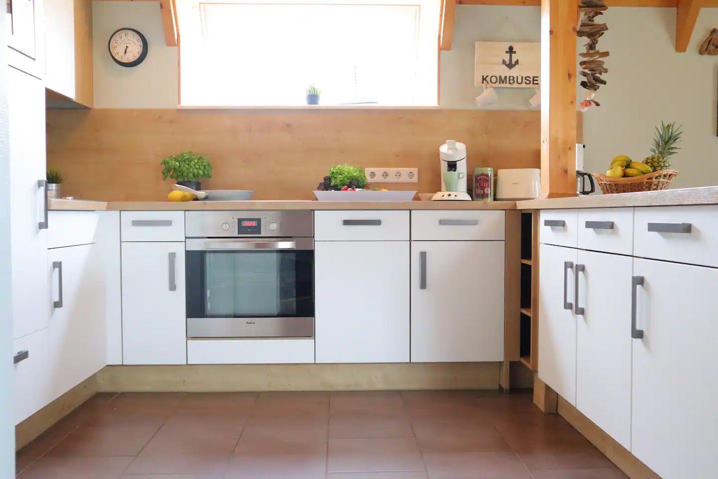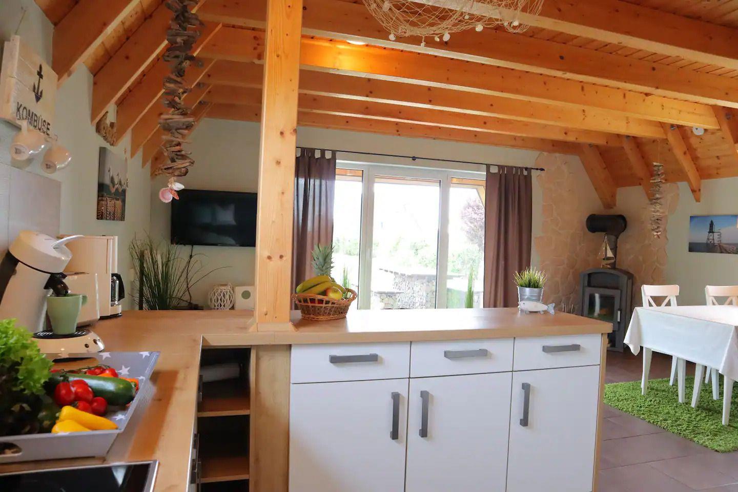 Die voll ausgestattete Einbauküche lädt zum gemeinsamen Kochen ein und bietet alles, was Sie für kulinarische Abenteuer benötigen. Im Wohn-/Essbereich können Sie es sich vor dem behaglichen Kamin gemütlich machen und entspannen.